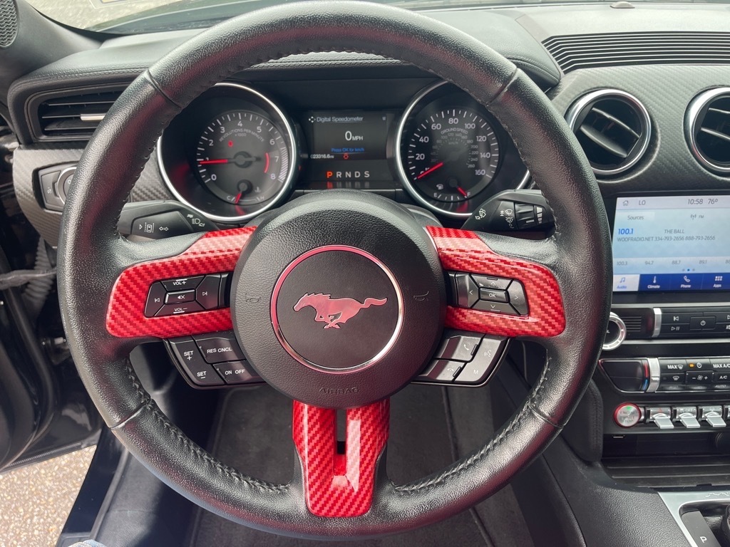 2022 Ford Mustang EcoBoost 4-Wheel Disc Brakes, ABS brakes, Air Conditioning, Alloy wheels, AM/FM Stereo, Auto High-beam Headlights, Auto-dimming Rear-View mirror, Black Accent Package, Brake assist, Bumpers: body-color, Compass, Delay-off headlights, Driver door bin, Driver vanity mirror, Dual front impact airbags, Dual front side impact airbags, Electronic Stability Control, Emergency communication system: 911 Assist, Exterior Parking Camera Rear, Four wheel independent suspension, Front anti-roll bar, Front Bucket Seats, Front Center Armrest, Front reading lights, Fully automatic headlights, Illuminated entry, Knee airbag, Leather Shift Knob, Low tire pressure warning, Occupant sensing airbag, Outside temperature display, Overhead airbag, Overhead console, Panic alarm, Passenger door bin, Passenger vanity mirror, Power door mirrors, Power steering, Power windows, Radio data system, Rain sensing wipers, Rear anti-roll bar, Rear Parking Sensors, Rear window defroster, Remote keyless entry, Security system, SiriusXM Radio, Speed control, Speed-sensing steering, Speed-Sensitive Wipers, Split folding rear seat, Steering wheel mounted audio controls, SYNC 3 Communications & Entertainment System, Tachometer, Telescoping steering wheel, Tilt steering wheel, Traction control, Trip computer, Variably intermittent wipers, Voltmeter, Wheels: 18x 8Machined-Face Aluminum, Wheels: 19x 8.5Ebony Black-Painted Aluminum. Shadow Black RWD EcoBoost 2.3L I4 GTDi DOHC Turbocharged VCT 10-Speed Automatic THIS VEHICLE IS LOCATED AT BONDYS FORD LINCOLN AT 3615 ROSS CLARK CIRCLE DOTHAN, AL 36303. PLEASE CALL US AT 800-239-5171 TO ASK US ANY QUESTIONS! MON-FRI SALES IS HERE FROM 8:30 TO 7:00 AND SAT 8:30 TO 6:00. WE ARE CLOSED ON SUNDAYS. Call Toll Free 800-239-5171 or 334-792-5171.