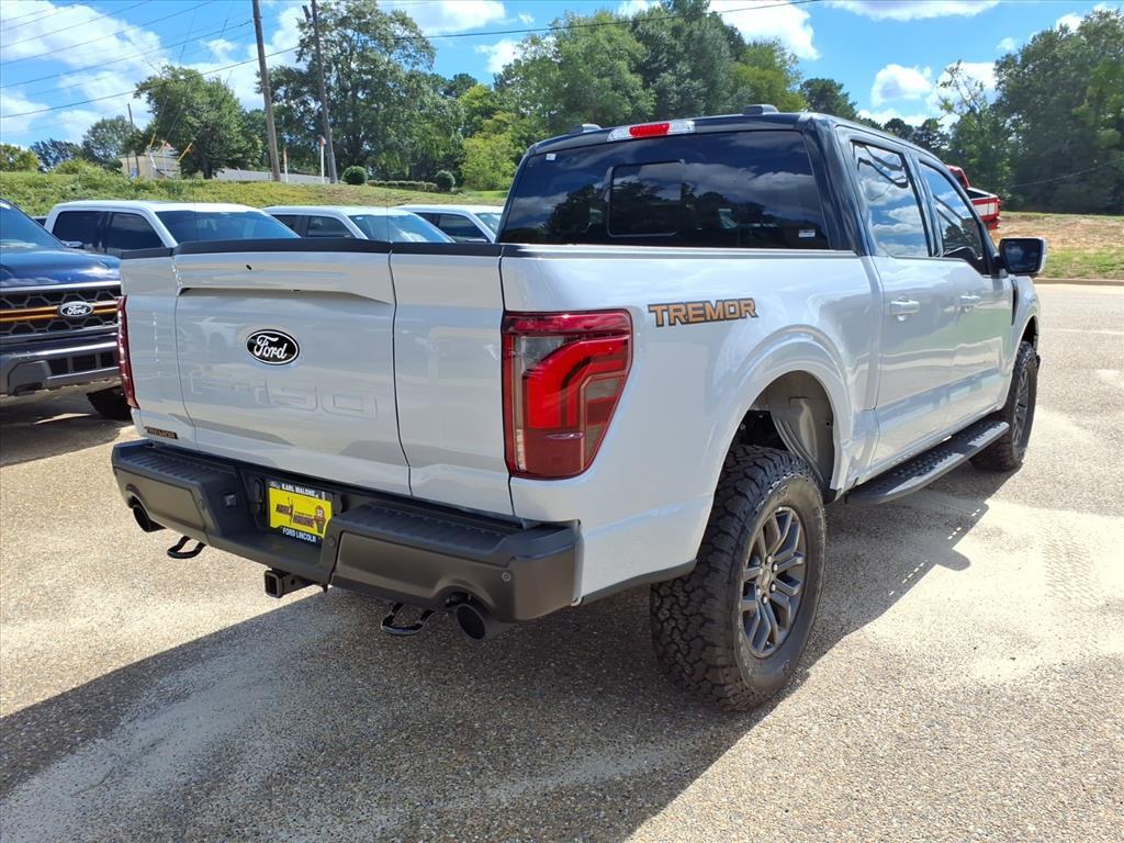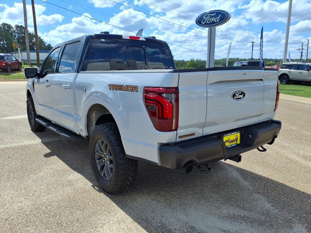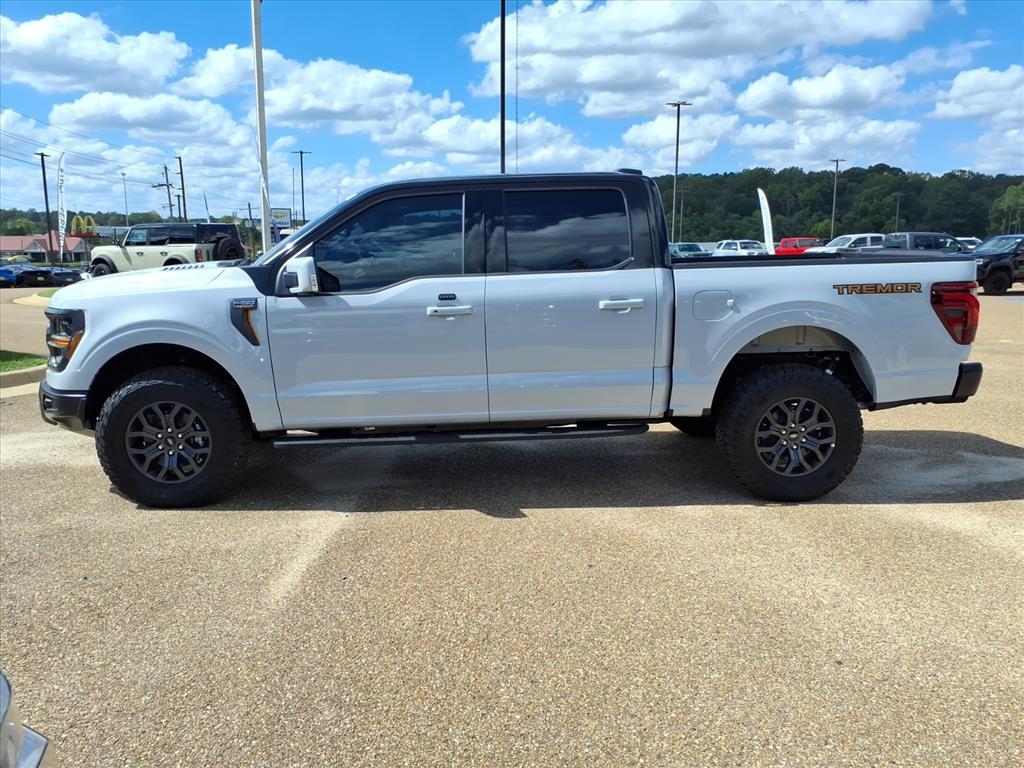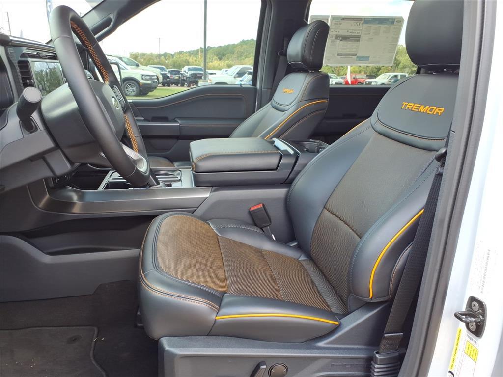 This NEW 2025 White Metallic Ford F-150 Tremor 5.0L V8 10-Speed Automatic 4WD is well equipped and includes these features and benefits: 4-Wheel Disc Brakes, 8 Speakers, ABS brakes, Adjustable pedals, Air Conditioning, Alloy wheels, AM/FM radio: SiriusXM with 360L, Auto High-beam Headlights, Auto-dimming door mirrors, Auto-dimming Rear-View mirror, Automatic temperature control, Brake assist, Bumpers: body-color, Compass, Delay-off headlights, Driver door bin, Driver vanity mirror, Dual front impact airbags, Dual front side impact airbags, Electronic Locking w/3.73 Axle Ratio, Electronic Stability Control, Emergency communication system: SYNC 4 911 Assist, Front anti-roll bar, Front Bucket Seats, Front Center Armrest, Front dual zone A/C, Front fog lights, Front reading lights, Front wheel independent suspension, Fully automatic headlights, GVWR: 7,100 lbs Payload Package, Heated door mirrors, Heated front seats, Illuminated entry, Low tire pressure warning, Navigation system: Connected Navigation, Occupant sensing airbag, Outside temperature display, Overhead airbag, Overhead console, Panic alarm, Passenger door bin, Passenger vanity mirror, Power door mirrors, Power driver seat, Power passenger seat, Power steering, Power windows, Radio data system, Radio: B&O Sound System by Bang & Olufsen, Rear reading lights, Rear step bumper, Rear window defroster, Remote keyless entry, Security system, Speed control, Split folding rear seat, Steering wheel mounted audio controls, SYNC 4 w/Enhanced Voice Recognition, Tachometer, Telescoping steering wheel, Tilt steering wheel, Traction control, Trip computer, Turn signal indicator mirrors, Unique Sport Cloth 40/Console/40 Power Front Seat, Variably intermittent wipers, Voltmeter, Wheels: 18Alloy w/Dark Matte Finish. We have a superb team of financial experts who are here to help you find the financing solution that best fits your needs and budget as a driver. And we want to see you drive home in a new or used vehicle that you