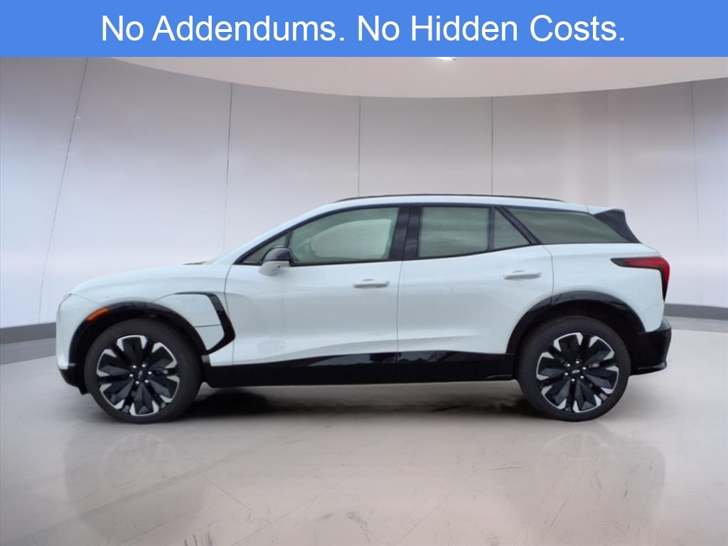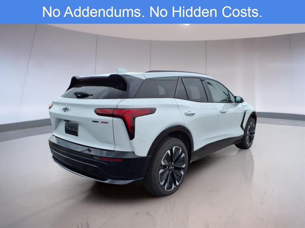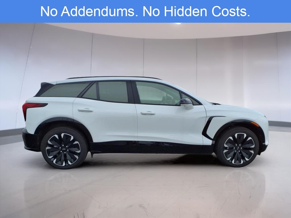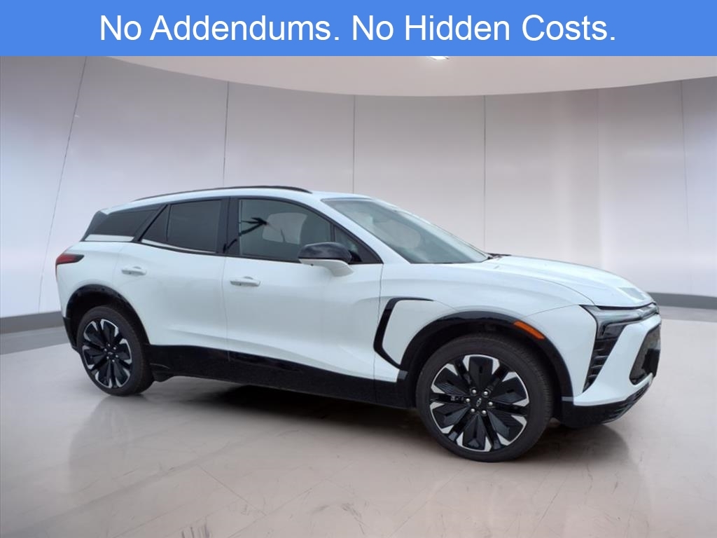 The 2024 Chevrolet Blazer EV RS AWD in Summit White offers a fully electric driving experience that integrates high-end comfort, advanced safety features, and performance-focused engineering. As an all-electric midsize SUV, it balances innovation and practicality with a driving range and acceleration designed for daily commutes and long-distance travel alike. Its dual-motor all-wheel drive setup ensures confident handling in various weather and road conditions, supported by a 1-speed automatic transmission and an 11.1 axle ratio that delivers smooth and responsive torque distribution. This Blazer EV RS is equipped with a wide array of driver-centric features, including an 8-way power adjustable driver seat with 2-way lumbar support, mirrored for the front passenger, and finished in Perforated Suede/Evotex upholstery. Both the front and rear outboard seats are heated, and front seats are also ventilated for year-round comfort. The heated steering wheel and heated wiper park are practical cold-weather additions, enhancing driver visibility and control during winter conditions. The cabin experience is elevated by a 17.7-inch diagonal advanced color LCD touchscreen display with integrated navigation, wireless smartphone connectivity, and a 6-speaker audio system. Drivers also benefit from a Head-Up Display that projects essential driving data into their line of sight and memory settings for both seat position and side mirrors. Dual-zone automatic climate control, a power liftgate, rain-sensing wipers, and a sport steering wheel further reflect the vehicles attention to comfort and usability. Safety and driver assistance technologies are robust in the RS trim, especially with the inclusion of the Convenience & Driver Confidence Package. This package adds features like Adaptive Cruise Control, Enhanced Automatic Emergency Braking, Intersection Automatic Emergency Braking, Reverse Automatic Braking, Rear Pedestrian Alert, Side Bicyclist Alert, and HD Surround Vision, which