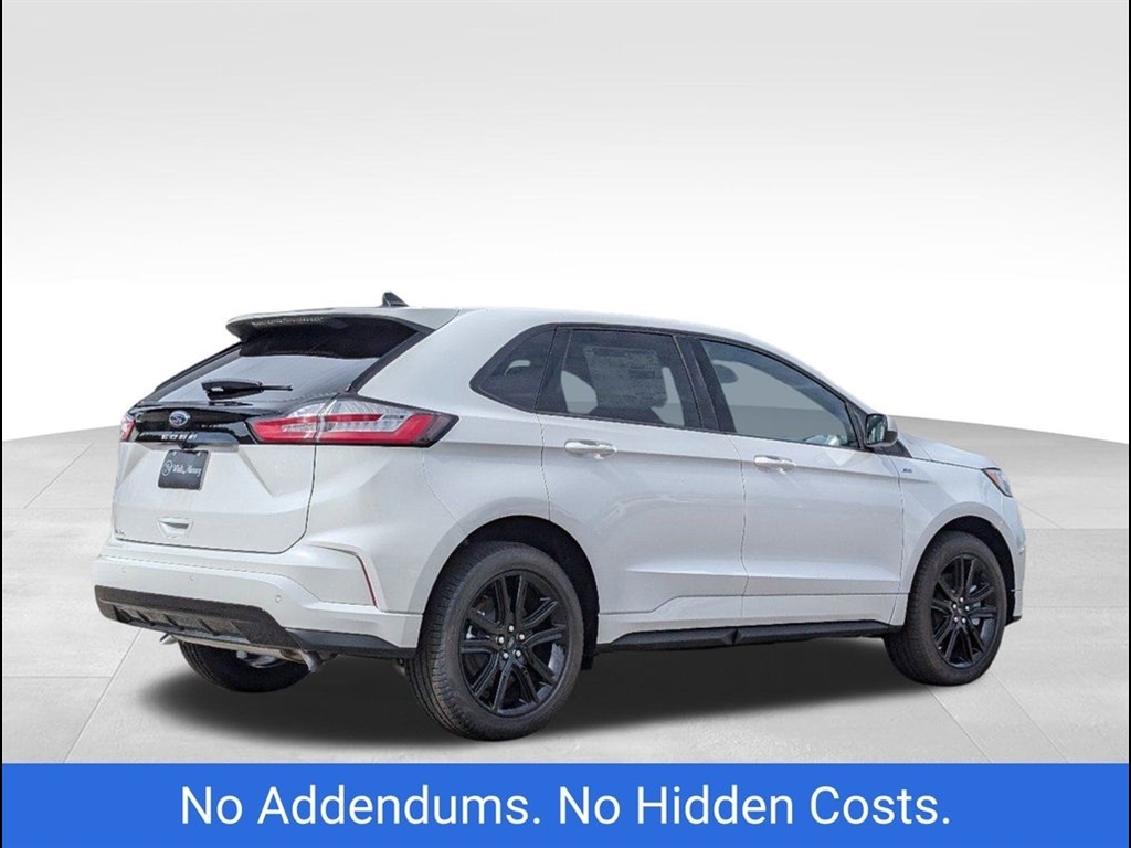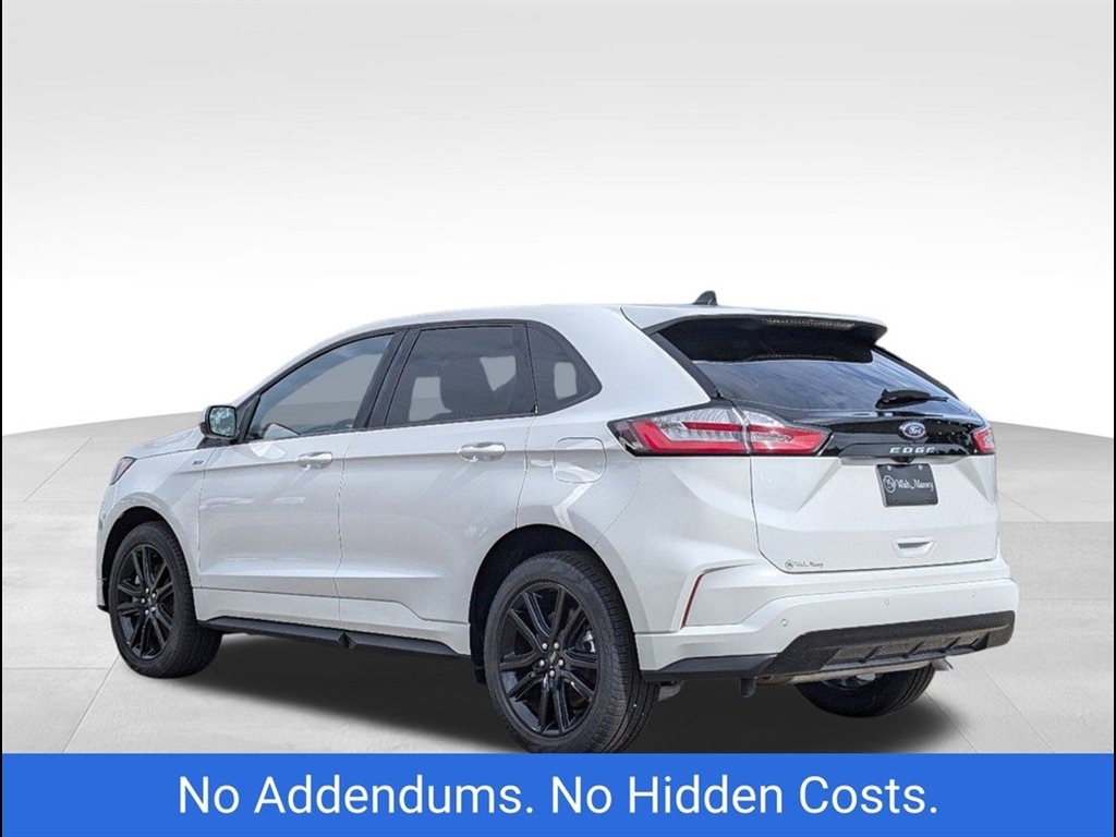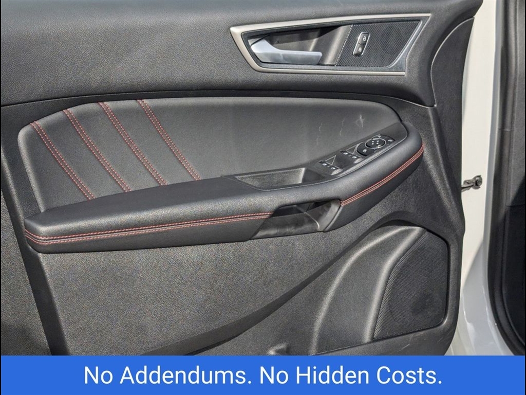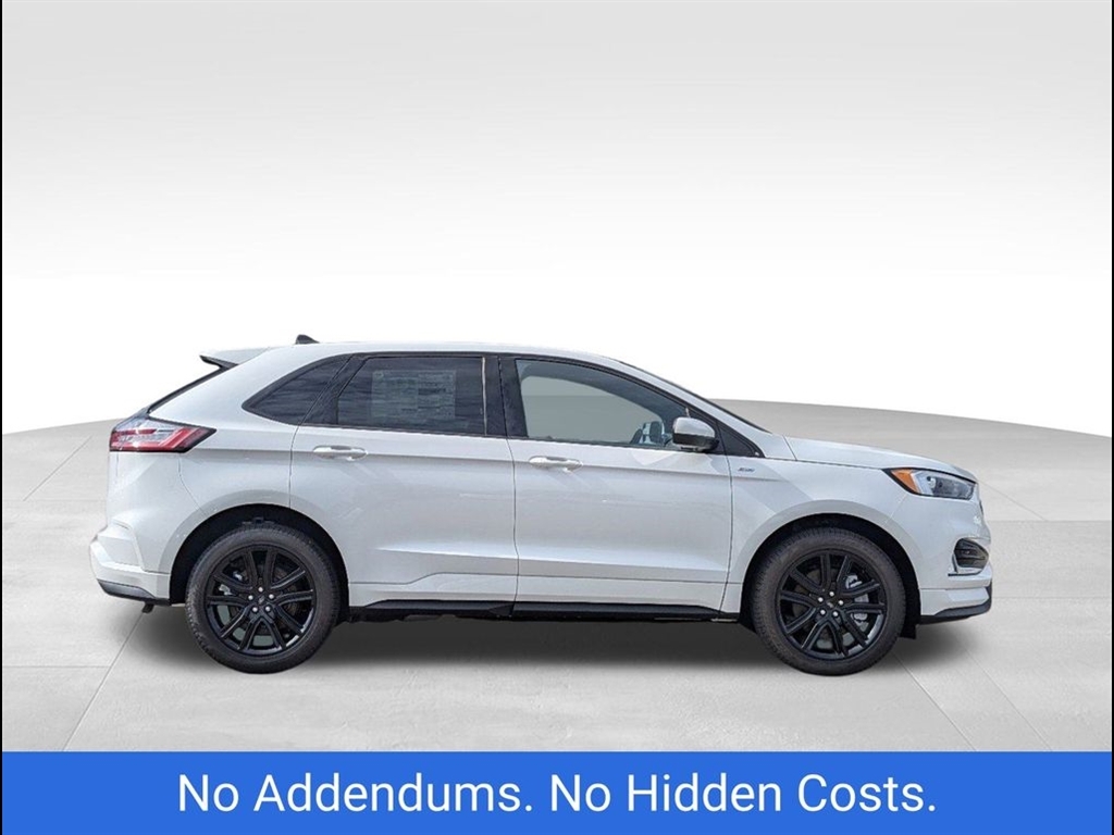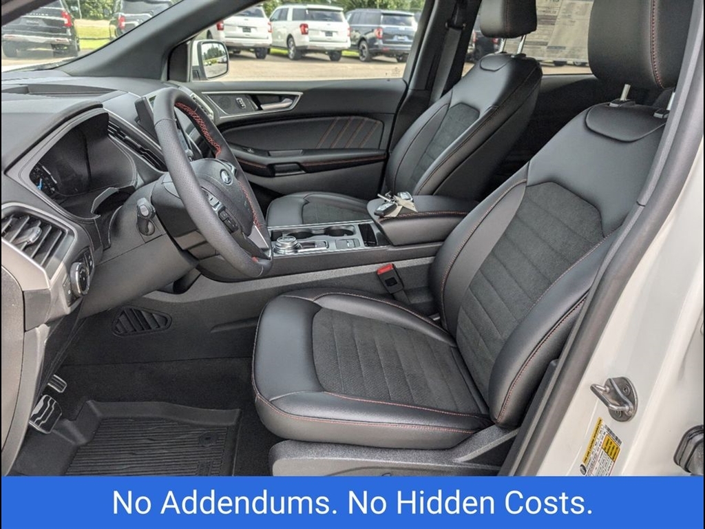 The 2024 Ford Edge ST-Line in Star White Metallic Tri-Coat offers a sleek, modern design with performance-driven features. Powered by a robust 2.7L V6 engine, this Edge delivers an exciting driving experience while maintaining excellent fuel efficiency. The bold exterior is complemented by the signature Star White Metallic Tri-Coat paint, offering a sophisticated, dynamic shine that stands out on the road. Inside, the ST-Line trim boasts premium materials, including leather-trimmed seats with contrasting red stitching, providing both style and comfort. The spacious cabin is designed for convenience, featuring a large 12-inch digital display, SYNC 4 technology, and Apple CarPlay/Android Auto compatibility for seamless connectivity. The rearview camera and parking sensors enhance safety while maneuvering, ensuring peace of mind during every drive. For performance enthusiasts, the ST-Lines sport-tuned suspension and 20-inch alloy wheels provide an agile and responsive ride. The SUV also comes equipped with Ford�s Co-Pilot360 suite, offering advanced safety features such as blind-spot monitoring, lane-keeping assist, and automatic emergency braking. The vehicles panoramic sunroof allows for an open, airy feel, and the hands-free liftgate adds an extra level of convenience. This 2024 Ford Edge ST-Line combines impressive power, luxury, and cutting-edge technology, making it the perfect choice for those seeking both style and performance in their next SUV.