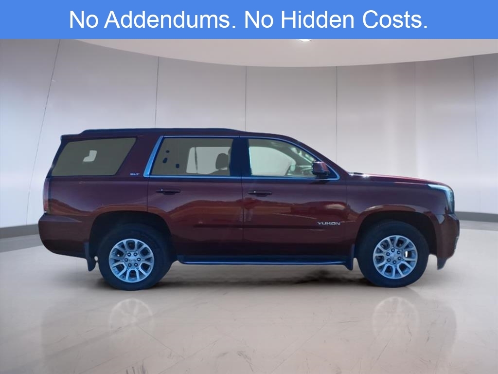 The 2017 GMC Yukon SLT delivers a perfect balance of power, luxury, and practicality, making it an ideal choice for families and professionals who expect full-size capability without sacrificing comfort. Finished in Summit White, this Yukon commands attention with its bold GMC signature chrome grille, projector-beam HID headlamps, and LED daytime running lights that highlight its confident, upscale design. Chrome accents on the door handles, window trim, and 18-inch polished aluminum wheels enhance its refined appearance, while features like power-retractable assist steps, roof rails, and a hands-free power liftgate showcase its versatility and convenience. The Yukons sleek, aerodynamic body lines and strong stance reflect its commanding presence on the road. Under the hood, this Yukon SLT is powered by a 5.3-liter EcoTec3 V8 engine paired with a 6-speed automatic transmission, producing 355 horsepower and 383 lb-ft of torque. This proven powertrain combines strength and efficiency with features like Active Fuel Management and Direct Injection, allowing it to deliver excellent towing capacity while maintaining smooth, composed acceleration. The available four-wheel-drive system ensures traction and confidence across all terrains, and its premium suspension setup provides a quiet, comfortable ride whether cruising the highway or navigating city streets. Inside, the Yukon SLT offers a first-class experience with seating for up to eight and premium materials throughout. The Jet Black leather-appointed seats feature 12-way power adjustments, heating and ventilation for the front row, and heated second-row seats to ensure comfort for every passenger. Tri-zone automatic climate control keeps the cabin comfortable in all conditions, while acoustic-laminated glass and enhanced insulation create a serene driving environment. The power-folding second and third rows allow for effortless transitions between passengers and cargo, offering exceptional flexibility for busy families. Technology is central to the Yukon SLTs appeal, featuring an 8-inch color touchscreen with the GMC Infotainment System, Apple CarPlay, Android Auto, navigation, and Bluetooth connectivity. The premium Bose 9-speaker sound system fills the cabin with crisp, immersive audio, while features like wireless charging, multiple USB ports, and a 110-volt power outlet keep everyone connected. The Driver Information Center provides customizable vehicle data, and keyless start, remote engine start, an