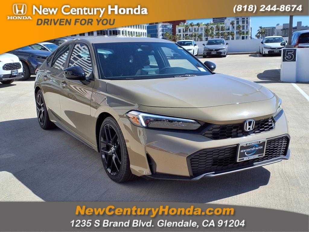 This 2025 Honda Civic Sport is a vehicle that is sure to turn heads. It has a sand dune pearl bg exterior and a black interior, with a 2.0 liter 4 cylinder engine that is fuel injected. It has an impressive fuel economy of 50 mpg in the city and 45 mpg on the highway, making it an efficient choice for any driver. It also comes with a number of features such as touch screen display, Bluetooth audio connection, blind spot sensor, hill start assist, Apple Carplay ready, navigation system with voice recognition, and Bluetooth phone connectivity. This vehicle is truly one of a kind and will surely turn heads wherever it goes. Contact Details: New Century Honda, 1235 S Brand Blvd, Glendale, CA, 91204, nchondaleads@host.udcnet.com, (818) 244-8674. Thank you for visiting New Century Honda in Glendale!