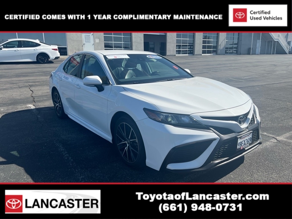 CARFAX One-Owner. Certified. Toyota Silver Certified Details: * SILVER CERTIFIED Eligibility: Vehicles up to 10 Model Years Old & Between 60,000-125,000 Miles on Odometer; Outside Gold Eligibility Parameters, Limited Powertrain Warranty: 12-Month/12,000-Mile(2), 24-Hour Roadside Assistance: 12-Month/12,000-Mile(3), Extended Warranty Coverage (items 2 and 3 above) Transferable at No Cost For Added Resale Value, Quality Assurance Inspection: 136-Point Minimum, Free CARFAX Vehicle History Report, Warranty Honored at Over 1,400 Toyota Dealers in the Continental U.S. and Canada, Trade-Ins Accepted, Trouble-free Handling of Your Transaction; Including DMV Paperwork 2022 Toyota Camry SE 28/39 City/Highway MPG We make it easy for you with a rigorous multi-point full vehicle inspection to ensure the cars we sell are ready for a safe drive on the road. * Toyota of Lancaster is your Antelope Valley Toyota Dealer. Come on down today to 43301 12th St. West Lancaster, CA 93534 and make your dreams come true.*