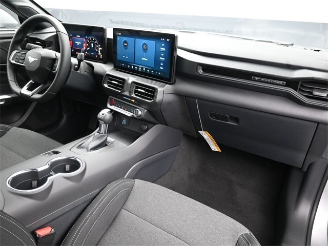Iconic Silver Metallic 2025 Ford Mustang RWD 10-Speed Automatic EcoBoost 2.3L I4 GTDi DOHC Turbocharged VCT 2D Coupe, EcoBoost 2.3L I4 GTDi DOHC Turbocharged VCT, 10-Speed Automatic, RWD, Iconic Silver Metallic, Dw, 9-Speaker Stereo System, Cloth/Vinyl Heated Bucket Seats, Equipment Group 101A High Package, SiriusXM w/360L & HD Radio. Welcome to Desoto Auto Mall where we offer a lifetime powertrain warranty on any noncommercial vehicle, 2 years of complimentary service and STATEWIDE DELIVERY ANYWHERE IN FLORDIA. This Mustang is well equipped with Equipment Group 101A High Package (9-Speaker Stereo System, Cloth/Vinyl Heated Bucket Seats, and SiriusXM w/360L & HD Radio), Wheel & Stripe Package (Wheels: 19x 8.5Machined-Face Aluminum), 2D Coupe, EcoBoost 2.3L I4 GTDi DOHC Turbocharged VCT, 10-Speed Automatic, RWD, Iconic Silver Metallic, Dw, 4-Wheel Disc Brakes, ABS brakes, Air Conditioning, Alloy wheels, AM/FM Stereo, Auto High-beam Headlights, Automatic temperature control, Brake assist, Bumpers: body-color, Compass, Delay-off headlights, Driver door bin, Driver vanity mirror, Dual front impact airbags, Dual front side impact airbags, Electronic Stability Control, Emergency communication system: 911 Assist, Exterior Parking Camera Rear, Four wheel independent suspension, Front anti-roll bar, Front Bucket Seats, Front Center Armrest, Front dual zone A/C, Front reading lights, Fully automatic headlights, Illuminated entry, Knee airbag, Leather Shift Knob, Low tire pressure warning, Occupant sensing airbag, Outside temperature display, Overhead airbag, Overhead console, Panic alarm, Passenger door bin, Passenger vanity mirror, Power door mirrors, Power steering, Power windows, Radio data system, Rain sensing wipers, Rear anti-roll bar, Rear Parking Sensors, Rear window defroster, Remote keyless entry, Speed control, Speed-sensing steering, Speed-Sensitive Wipers, Split folding rear seat, Sport steering wheel, Steering wheel mounted audio controls, SYNC 4, Tachometer, Te