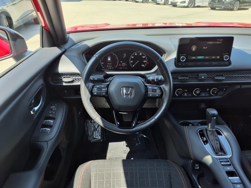 This vehicle is a 2023 Honda HR-V Sport, certified pre-owned and with 20,332 miles. It is powered by a 2.0 liter 4 cylinder engine with sequential port fuel injection, and has a Milano Red (re) exterior. Inside, it has a black (bk) interior, and features such as a touch screen display, Bluetooth audio connection, blind spot sensor, hill start assist, Apple Carplay ready, and Bluetooth phone connectivity. This car is truly one of a kind, and is sure to turn heads wherever it goes!