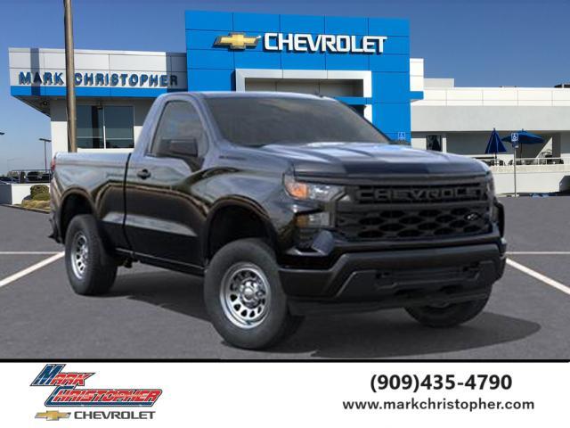 Black 2026 Chevrolet Silverado 1500 WT RWD 8-Speed Automatic 2.7L I4 Turbocharged DOHC 16V LEV3-SULEV30 310hp 8-Speed Automatic, Jet Black Vinyl.Advertised price includes all manufacture available rebates please check with dealer for qualification details. All vehicles are subject to prior sale. Listed sales prices exclude tax and license and dealer installed options. All finance offers OAC. Residency restrictions apply. CALL 909.975.3998.Mark Christopher Auto Center is the largest Chevrolet, Buick, Cadillac and GMC dealer in California! Being centrally located in Ontario, CA. Allows us to easily serve the Los Angeles metro area. Family owned and operated since 1975, with a friendly staff who can help you find your next Brand New or Certified Pre-Owned Vehicle. Please confirm the accuracy of the included equipment by calling us prior to purchase. Some customers may not qualify for all rebates listed, residency restrictions apply see dealer for details. Price includes: $1000 - GM Bonus Cash. Exp. 11/03/2025 $1750 - Chevrolet Consumer Cash Program. Exp. 11/03/2025