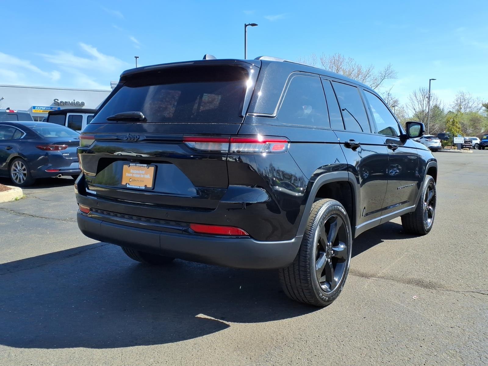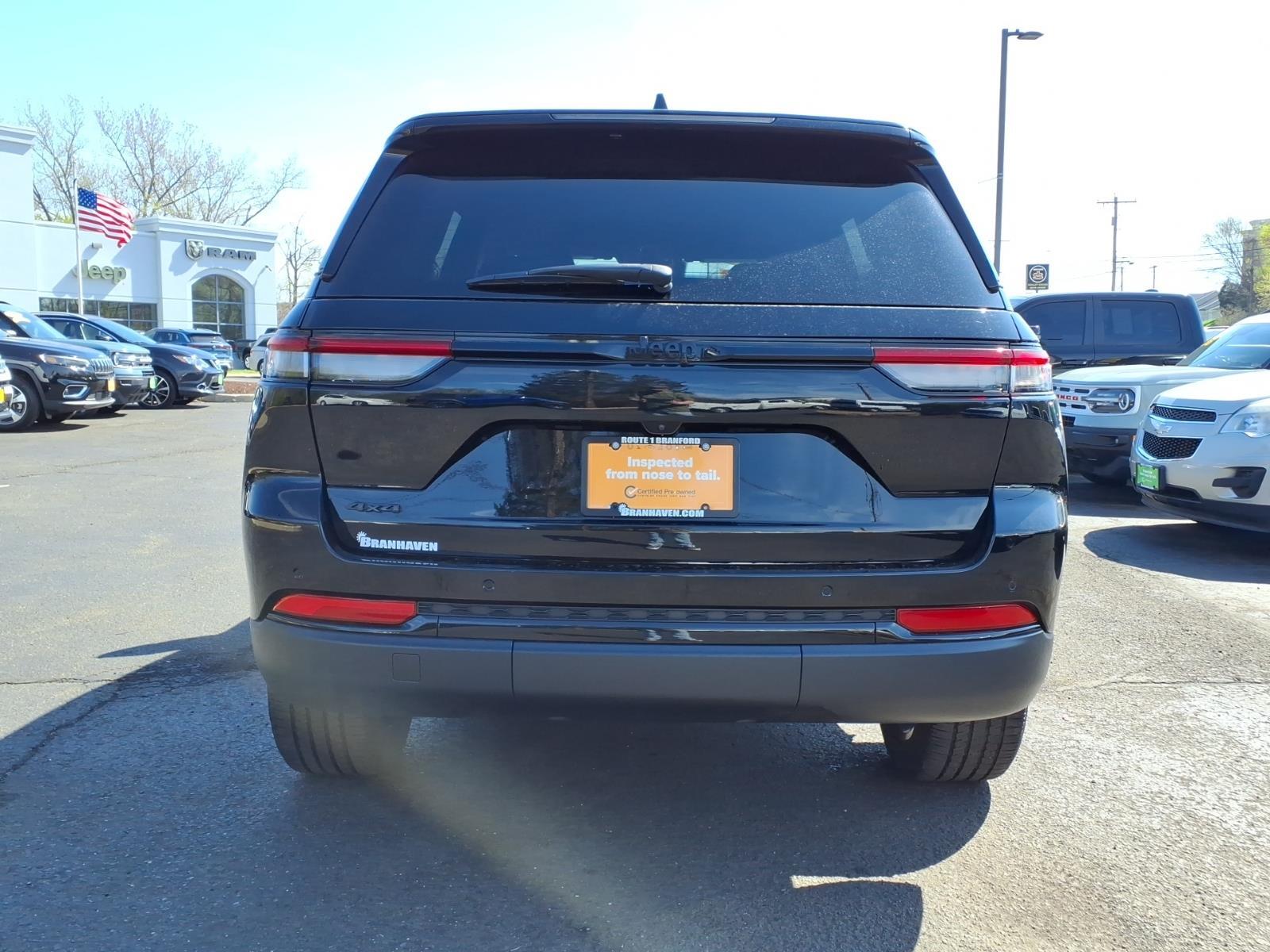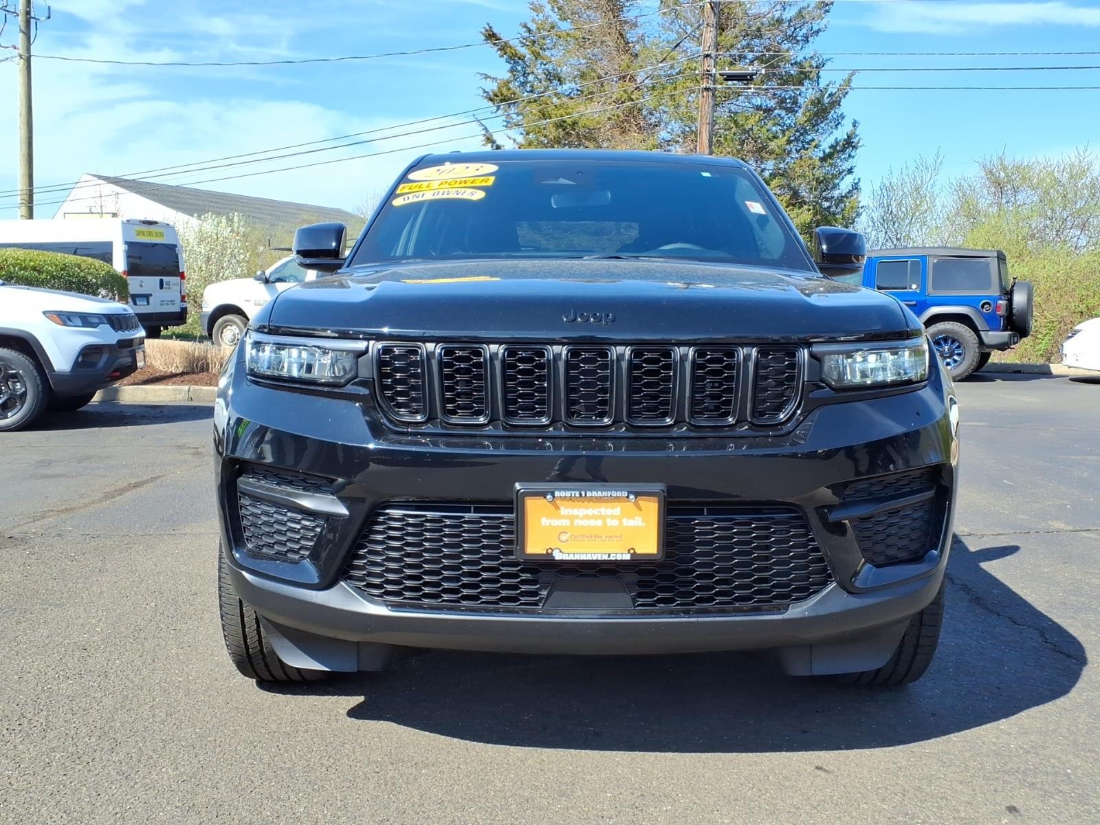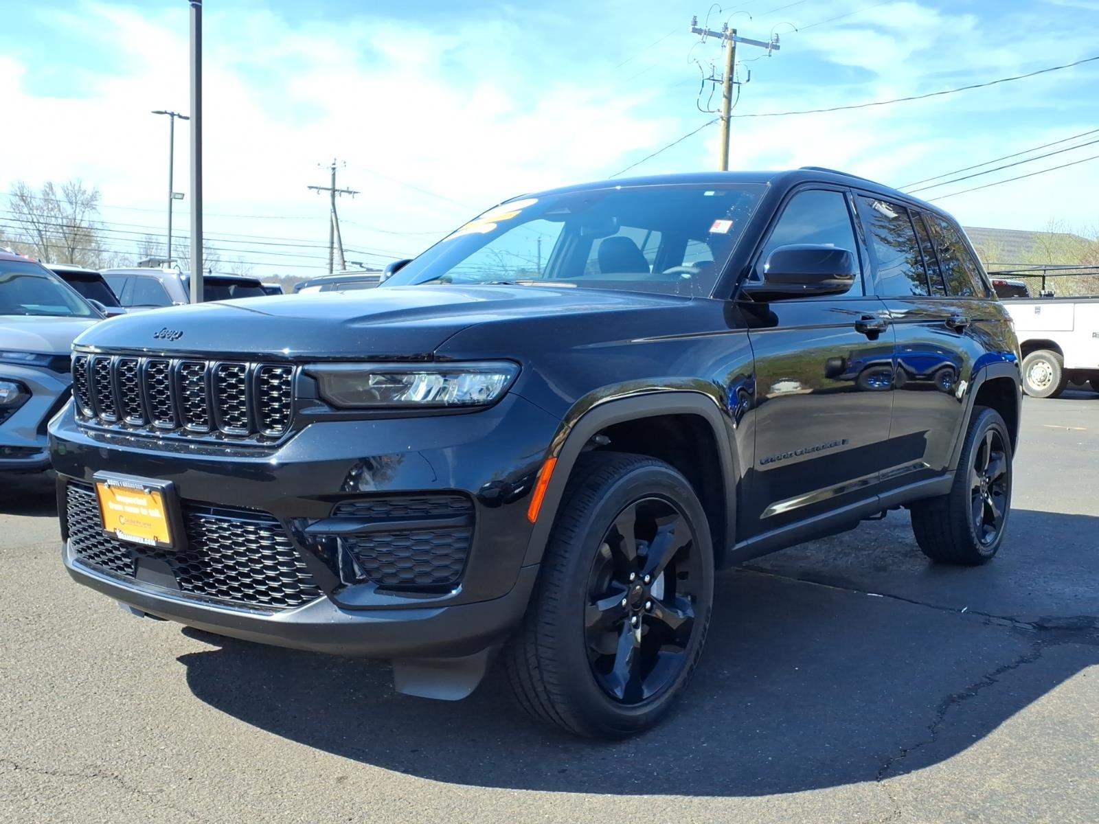 2023 Jeep Grand Cherokee Altitude X ***CHRYSLER PRE OWNED CERTIFIED***, ***1 OWNER***, POWER SUNROOF, Grand Cherokee Altitude X, 4D Sport Utility, 3.6L V6 24V VVT, 8-Speed Automatic, 4WD, Diamond Black Crystal Pearlcoat, Global Black w/Capri Leatherette/Suede Seats, 3.45 Rear Axle Ratio, 4-Wheel Disc Brakes, 6 Speakers, ABS brakes, Air Conditioning, Alloy wheels, Altitude Appearance Package, Anti-whiplash front head restraints, Automatic temperature control, Black Headliner, Brake assist, Compass, Delay-off headlights, Delete Laredo Badge, Driver door bin, Driver vanity mirror, Dual front impact airbags, Dual front side impact airbags, Electronic Stability Control, Four wheel independent suspension, Front anti-roll bar, Front dual zone A/C, Front reading lights, Fully automatic headlights, Gloss Black Exterior Accents, Heated door mirrors, Illuminated entry, Knee airbag, Low tire pressure warning, Occupant sensing airbag, Outside temperature display, Overhead airbag, Overhead console, Panic alarm, ParkView Rear Back-Up Camera, Passenger door bin, Passenger vanity mirror, Power door mirrors, Power driver seat, Power Liftgate, Power steering, Power Sunroof, Power windows, Quick Order Package 23B Altitude, Radio data system, Rear anti-roll bar, Rear reading lights, Rear window defroster, Rear window wiper, Remote keyless entry, Remote Start System, Secondary Active Grille Shutters, Security system, Selectable Tire Fill Alert, Speed-Sensitive Wipers, Split folding rear seat, Spoiler, Steering wheel mounted audio controls, Tachometer, Telescoping steering wheel, Tilt steering wheel, Traction control, Trip computer, Variably intermittent wipers, Voltmeter, Wireless Charging Pad. Recent Arrival! Odometer is 10579 miles below market average! 19/26 City/Highway MPG FCA US LLC Certified Pre-Owned Details: * Limited Warranty: 3 Month/3,000 Mile (whichever comes first) after new car warranty expires or from certified purchase date * Vehicles Up to 75,000 Miles and/or 5 Model Years. 24-Hour Towing & Roadside Assistance, Car Rental Allowance, CARFAX� Vehicle History ReportTM and an Introductory 3-month Subscription to SiriusXM� Satellite Radio & Certified Warranty Upgrades * Vehicle History * Roadside Assistance * Powertrain Limited Warranty: 84 Month/100,000 Mile (whichever comes first) from original in-service date * 125 Point Inspection * Warranty Deductible: $100 * Transferable Warranty Come in Today to see why were Connecticuts First Five Star Chrysler Jee