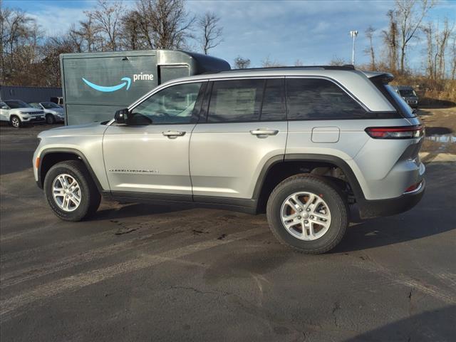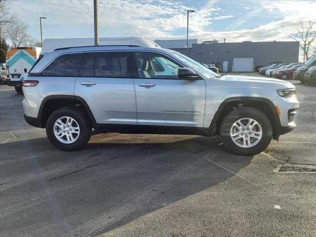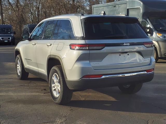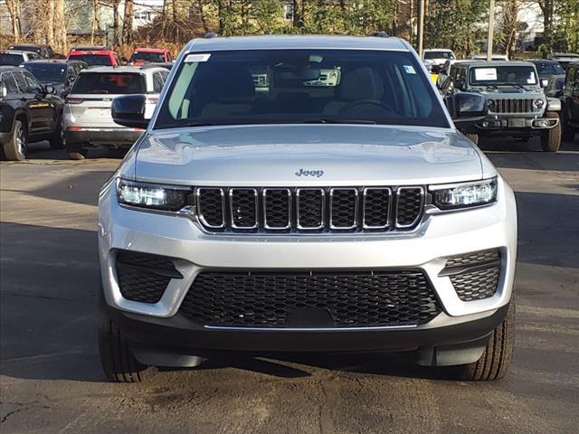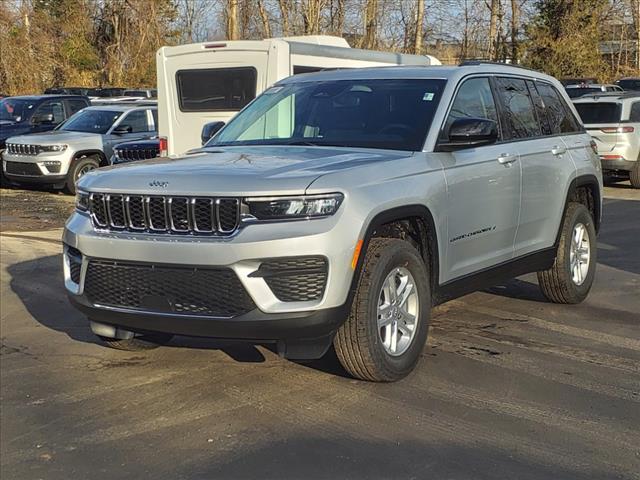 Silver Zynith 2024 Jeep Grand Cherokee Laredo 4WD 8-Speed Automatic 3.6L V6 24V VVT 4WD, 3.45 Rear Axle Ratio, 4-Wheel Disc Brakes, 6 Speakers, ABS brakes, Air Conditioning, Alloy wheels, Anti-whiplash front head restraints, Automatic temperature control, Brake assist, Bumpers: body-color, Cloth Seats, Compass, Delay-off headlights, Driver door bin, Driver vanity mirror, Dual front impact airbags, Dual front side impact airbags, Electronic Stability Control, Emergency communication system, Four wheel independent suspension, Front anti-roll bar, Front Bucket Seats, Front Center Armrest w/Storage, Front dual zone A/C, Front License Plate Bracket, Front reading lights, Fully automatic headlights, Heated door mirrors, Illuminated entry, Knee airbag, Low tire pressure warning, Normal Duty Suspension, Occupant sensing airbag, Outside temperature display, Overhead airbag, Overhead console, Panic alarm, ParkView Rear Back-Up Camera, Passenger door bin, Passenger vanity mirror, Power door mirrors, Power driver seat, Power steering, Power Sunroof, Power windows, Quick Order Package 23A Laredo, Radio data system, Radio: Uconnect 5 w/8.4Display, Rear anti-roll bar, Rear reading lights, Rear window defroster, Rear window wiper, Remote keyless entry, Security system, Speed control, Speed-Sensitive Wipers, Split folding rear seat, Spoiler, Steering wheel mounted audio controls, Tachometer, Telescoping steering wheel, Tilt steering wheel, Traction control, Trip computer, Variably intermittent wipers, Voltmeter, Wheels: 17x 6.5Fully Painted Aluminum. 19/26 City/Highway MPG