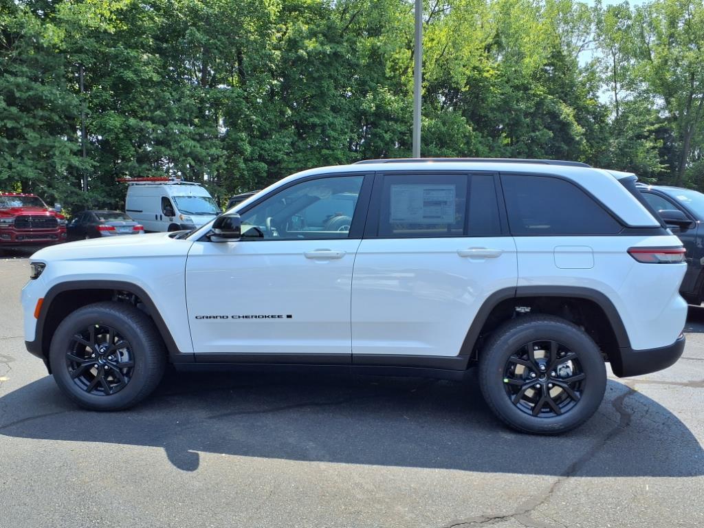 New Price! Bright White Clearcoat 2025 Jeep Grand Cherokee Altitude X 4WD 8-Speed Automatic 3.6L V6 24V VVT 4WD, 115V Auxiliary Power Outlet, 4-Wheel Disc Brakes, 6 Speakers, Air Conditioning, Alloy wheels, Altitude X, AM/FM radio: SiriusXM, Anti-whiplash front head restraints, Automatic temperature control, Black Headliner, Brake assist, Bumpers: body-color, Capri Leatherette/Suede Seats, Cloth Seats, Compass, Delay-off headlights, Delete Laredo Badge, Driver door bin, Driver vanity mirror, Dual front impact airbags, Dual front side impact airbags, Electronic Stability Control, Emergency communication system, Four wheel independent suspension, Front anti-roll bar, Front Bucket Seats, Front Center Armrest w/Storage, Front dual zone A/C, Front reading lights, Fully automatic headlights, Gloss Black Exterior Accents, Heated door mirrors, Heated Front Seats, Heated Steering Wheel, Illuminated entry, Knee airbag, Low tire pressure warning, Model Year Tracking, Normal Duty Suspension, Occupant sensing airbag, Outside temperature display, Overhead airbag, Overhead console, Panic alarm, ParkView Rear Back-Up Camera, Passenger door bin, Passenger vanity mirror, Power door mirrors, Power driver seat, Power Liftgate, Power steering, Power Sunroof, Power windows, Quick Order Package 23M Altitude X, Radio data system, Radio: Uconnect 5 w/8.4Display, Rain Sensitive Windshield Wipers, Rear anti-roll bar, Rear reading lights, Rear window defroster, Rear window wiper, Remote keyless entry, Remote Start System, Security system, Selectable Tire Fill Alert, Speed-Sensitive Wipers, Split folding rear seat, Spoiler, Steering wheel mounted audio controls, Tachometer, Telescoping steering wheel, Tilt steering wheel, Traction control, Trip computer, Variably intermittent wipers, Voltmeter, Wheels: 18x 8Fully Painted Aluminum 1, Wireless Charging Pad. 19/26 City/Highway MPG