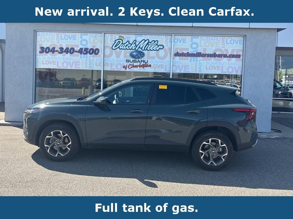Vehicle DetailsFind exceptional value in this 2025 Chevrolet Trax LT, now available in Charleston, WV. With only 5,903 miles, this Chevrolet Trax delivers low-mileage reliability paired with modern features and efficient performance from its 3-cylinder, 1.2L gasoline engine and front-wheel drive configuration. Ideal for city commutes and weekend escapes, the Chevrolet Trax balances nimble handling with fuel-conscious engineering. Inside, premium leather seats provide comfort and a refined cabin experience, while automatic climate control keeps the interior temperature consistent for every drive. Convenience features like remote start and hands-free Bluetooth make daily routines easier-start the vehicle from a distance and stay connected to your phone without taking your hands off the wheel. Advanced driver assistance is included with lane keep assist, enhancing safety and confidence on highways and busy streets. The Chevrolet Trax LTs modern styling and practical dimensions make parking and maneuvering around Charleston effortless, and the efficient 1.2L engine helps reduce fuel stops. Low mileage on this 2025 model means many miles of dependable service remain, backed by contemporary technology and comfort features expected in a late-model compact SUV. Schedule a test drive in Charleston, WV to experience the comfortable leather interior, smart connectivity, and thoughtful safety systems of this well-equipped Chevrolet Trax LT.EquipmentThe Chevrolet Trax offers Automatic Climate Control for personalized comfort. The Chevrolet Traxs Lane Departure Warning keeps you safe by alerting you when you drift from your lane. This unit has a clean CARFAX vehicle history report. Protect this vehicle from unwanted accidents with a cutting edge backup camera system. This Chevrolet Trax stays safely in its lane with Lane Keep Assist. The leather seats in this 2025 Chevrolet Trax are a must for buyers looking for comfort, durability, and style. This unit features a hands-free Bluetooth phone system. Never get into a cold vehicle again with the remote start feature on this model. The vehicle projects refinement with a racy metallic gray exterior. This Chevrolet Trax is outfitted with an OnStar communication system. Front wheel drive on this 2025 Chevrolet Trax gives you better traction and better fuel economy. Set the temperature exactly where you are most comfortable in it. The fan speed and temperature will automatically adjust to maint