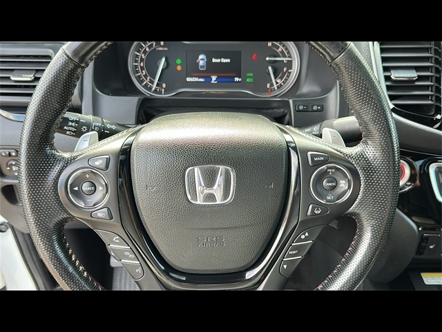 Dual front airbags, front seat mounted side-impact airbags, dual head curtain side-impact airbags with rollover sensor, four-wheel disc brakes with anti-lock, brake assist, electronic brake distribution, vehicle stability assist, traction control, hill start assist, rearview camera, daytime running lights, remote keyless entry, security system, push button engine start, Bluetooth hands free phone system, and tire pressure monitoring system with Tire Fill Assist and location/pressure indicators. RTS adds smart entry system, remote engine start, fog lights, and HomeLink remote system. RTL-T adds LED daytime running lights, Honda LaneWatch, HondaLink, and navigation system. RTL-E adds lane keeping assist system, adaptive cruise control, LED headlights with automatic high beam, blind spot information system with cross traffic monitor, collision mitigation braking system, forward collision warning, lane departure warning, road departure mitigation, and parking sensors.