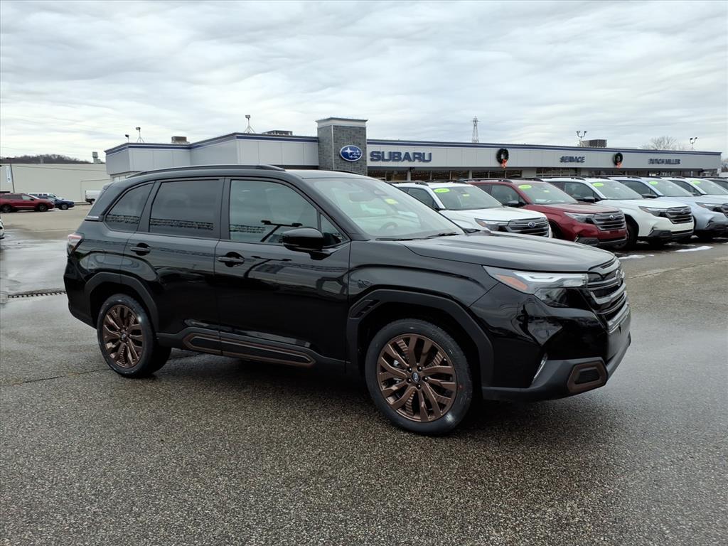 Vehicle Details2026 Subaru Forester Sport AWD - 4-cyl, 2.5L gasoline - located in Charleston, WV. Ready for daily commutes and weekend adventures, this Sport model pairs Subarus legendary Symmetrical All-Wheel Drive with a responsive 2.5L four-cylinder engine for confident handling in rain, snow, or gravel. Youll appreciate modern convenience and safety features like Adaptive Cruise Control and Lane Keep Assist, which help maintain speed and lane position on long drives. Stay connected with Apple CarPlay and Android Auto for seamless smartphone integration, plus Automatic Climate Control to keep the cabin comfortable no matter the weather. This Subaru Forester Sport offers a roomy interior, versatile cargo space, and rugged styling that stands out in town and on backroads. Fuel efficiency, reliability, and Subarus practical design make it an excellent choice for families and outdoor enthusiasts alike. Located in Charleston, WV, this vehicle is being offered at the best price in the area - competitive, transparent, and ready to move. Schedule a test drive today to experience the confident AWD system, smooth 4-cyl power, and advanced driver assistance features in person. Financing options available to fit your budget. Act now to secure this exceptional Subaru Forester Sport at the best local value.EquipmentThe leather seats in this model are a must for buyers looking for comfort, durability, and style. This unit has auto-adjust speed for safe following. Protect this unit from unwanted accidents with a cutting edge backup camera system. The vehicle offers Android Auto for seamless smartphone integration. The Subaru Forester keeps you comfortable with Auto Climate. This unit offers Apple CarPlay for seamless connectivity. It features a hands-free Bluetooth phone system. Lane Keep Assist in it helps maintain safe driving by gently steering to stay within the lane. Maintaining a stable interior temperature in this model is easy with the climate control system. This model is painted with a sleek and sophisticated black color. The vehicle is equipped with all wheel drive. This unit has a 4 Cyl, 2.5L high output engine. Enjoy the convenience of the power liftgate on this vehicle. Control your garage door with its built in HomeLink System.PackagesHarman/kardon Speaker System and Power Rear Gate and Reverse Automatic Braking: Reverse Automatic Braking (RAB) System; Harman/kardon Speaker System; Power Rear Gate; SI-Dri