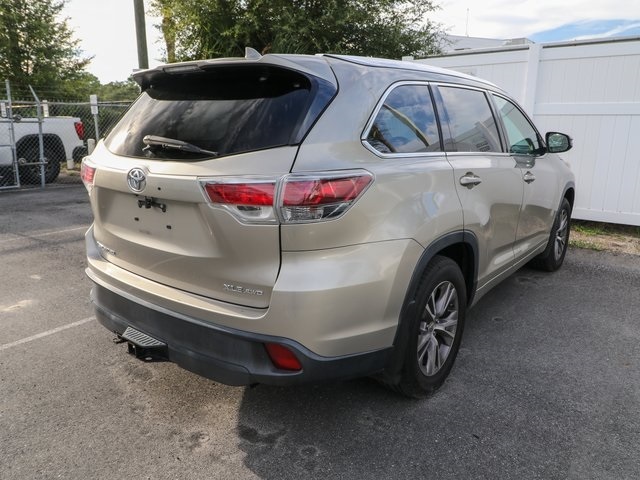 2015 Toyota Highlander XLE V6 Gold This Highlander is equipped with features such as AWD, 3rd row seats: split-bench, 4-Wheel Disc Brakes, 4.154 Axle Ratio, 6 Speakers, ABS brakes, Air Conditioning, Alloy wheels, AM/FM radio: SiriusXM, Anti-whiplash front head restraints, Auto-dimming Rear-View mirror, Automatic temperature control, Brake assist, Bumpers: body-color, CD player, Delay-off headlights, Driver door bin, Driver vanity mirror, Dual front impact airbags, Dual front side impact airbags, Electronic Stability Control, Exterior Parking Camera Rear, Four wheel independent suspension, Front anti-roll bar, Front Bucket Seats, Front Center Armrest, Front dual zone A/C, Front fog lights, Front reading lights, Fully automatic headlights, Garage door transmitter, Heated door mirrors, Heated front seats, Illuminated entry, Knee airbag, Leather Seat Material, Leather Shift Knob, Low tire pressure warning, Navigation System, Occupant sensing airbag, Outside temperature display, Overhead airbag, Overhead console, Panic alarm, Passenger door bin, Passenger vanity mirror, Power door mirrors, Power driver seat, Power Liftgate, Power moonroof, Power steering, Power windows, Radio: Entune Premium Audio w/Nav & App Suite, Rear air conditioning, Rear anti-roll bar, Rear reading lights, Rear window defroster, Rear window wiper, Reclining 3rd row seat, Remote keyless entry, Roof rack: rails only, Security system, Speed control, Speed-sensing steering, Split folding rear seat, Spoiler, Steering wheel mounted audio controls, Tachometer, Telescoping steering wheel, Tilt steering wheel, Traction control, Trip computer, Turn signal indicator mirrors, Variably intermittent wipers, and Wheels: 18" Split 5-Spoke Machined-Face Alloy. Awards: * ALG Residual Value Awards, Residual Value Awards * 2015 IIHS Top Safety Pick * 2015 KBB.com 10 Best Certified Pre-Owned 3-Row SUVs Under $30,000 * 2015 KBB.com Best Buy Awards * 2015 KBB.com 15 Best Family Cars Reviews: * The 2015 Toyota Highlander is a safe choice, for all the right reasons. Comfortable, accommodating and feature-packed, with a variety of models for all budgets, the Highlander’s a tough act to follow. Source: KBB.com * Refined interior appointments; quiet, compliant ride; smooth and strong V6 engine; seating for up to eight; fresh technology offerings. Source: Edmunds