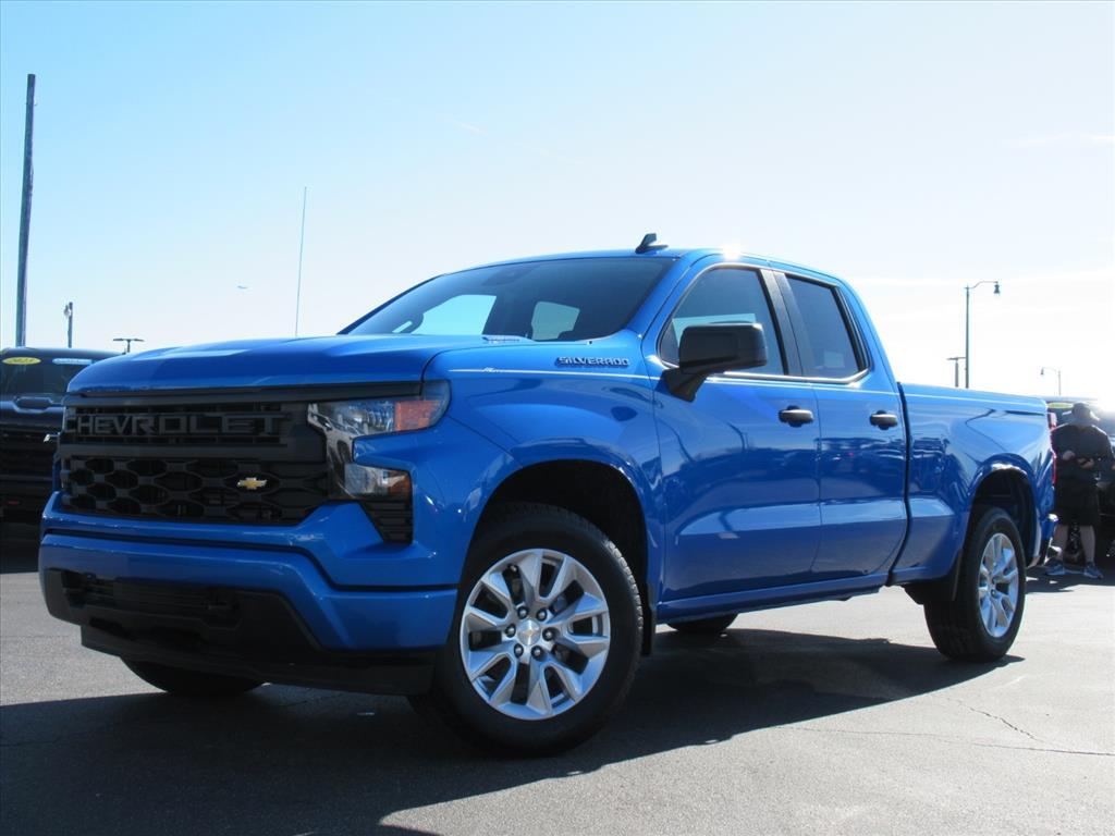 This 2026 Chevrolet Silverado 1500 Custom Double Cab is a state-of-the-art vehicle. It has a 4x2, 2.7 liter TurboMax Turbo I4 310hp 430ft. lbs engine, and is turbocharged for maximum efficiency. It has a riptide blue metallic exterior and jet black interior, giving it a sleek and modern look. It also has great features such as touch screen display, Bluetooth audio connection, hill start assist, Bluetooth phone connectivity, and more. With an impressive fuel economy of 18 mpg in the city and 21 mpg on the highway, this car is perfect for anyone looking for a reliable mode of transportation. Contact Details: Cecil Clark Chevrolet, 8843 U.S.Hwy. 441, Leesburg, FL, 34788, jclark@cecilclarkchevrolet.com, (352) 702-9073.