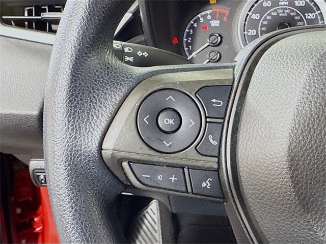 BLUETOOTH, REAR BACK UP CAMERA, APPLE/ANDROID CAR PLAY, LANE DEPARTURE WARNING, LOCAL TRADE, FRESH OIL CHANGE, CARFAX ONE OWNER VEHICLE. Toyota 2021 Corolla Barcelona Red Metallic LE Certified. Toyota Gold Certified Details: * Limited Warranty: 12 Month/12,000 Mile Limited Comprehensive Warranty: 12 Month/12,000 Mile (whichever comes first) from certified purchase date * Powertrain Limited Warranty: 84 Month/100,000 Mile (whichever comes first) from TCUV purchase date * 160 Point Inspection * Warranty Deductible: $0 * Roadside Assistance * Roadside Assistance for 7 Year / 100,000 Mile. Standard New-Car Financing Rates Available. Warranty honored at over 1,400 Toyota dealers in the continental U.S. & Canada. Trade-ins accepted. Trouble-free handling of your transaction, including DMV paperwork * Vehicle History * Transferable Warranty 1.8L I4 DOHC 16V FWD CVT Odometer is 31110 miles below market average! 30/38 City/Highway MPG