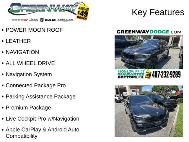 Dual front airbags, front seat mounted side-impact airbags, dual head curtain side-impact airbags, four-wheel disc brakes with anti-lock, electronic brake-force distribution, dynamic brake control, traction control, dynamic stability control, brake fade compensation, start-off assistant, brake drying, brake stand-by, acoustic pedestrian protection, lane departure warning, frontal collision warning, city collision mitigation, rollover sensor, adaptive brake lights, programmable LED daytime running lights, central locking system, anti-theft alarm system, BMW Assist eCall, Xenon adaptive headlights, cornering lights, LED fog lights, Bluetooth hands-free phone system, navigation system, advanced vehicle and key memory, push button engine start/stop button, rain-sensing windshield wipers, front/rear park distance control, universal garage door opener, and tire pressure monitoring system.