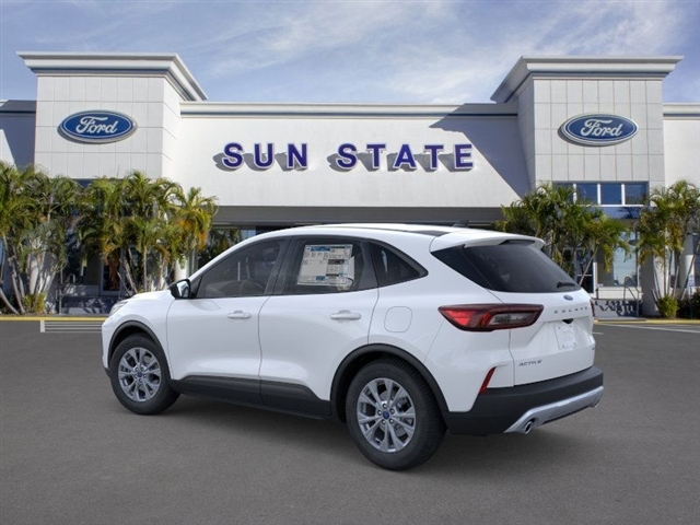 $6,350 off MSRP! Priced below KBB Fair Purchase Price! 2025 Ford Escape Active in Oxford White and Ebony w/Unique Cloth Front Bucket Seats. AWD, Brake assist, Electronic Stability Control, Emergency communication system: SYNC 4 911 Assist, Equipment Group 200A, FordPass Connect, Four wheel independent suspension, Fully automatic headlights, Low tire pressure warning, Occupant sensing airbag, Overhead airbag, Panic alarm, Rear anti-roll bar, Rear window wiper, Remote keyless entry, Speed control, Speed-sensing steering, Speed-Sensitive Wipers, Steering wheel mounted audio controls, Traction control, Variably intermittent wipers, Wheels: 17Shadow Silver-Painted Aluminum. This vehicle is only available at SUNSTATE FORD, 3535 West Colonial Dr Orlando FL 32808. SUNSTATEFORD.COM (407) 581-0383. Price includes: $4000 - Bonus Customer Cash. Exp. 01/05/2026