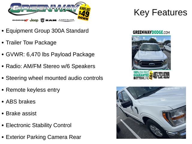 4WD, 8-Way Power Driver's Seat w/Power Lumbar, ABS brakes, Auto Start-Stop Removal, Brake assist, Class IV Trailer Hitch Receiver, Electronic Stability Control, Equipment Group 300A Standard, Exterior Parking Camera Rear, Fully automatic headlights, GVWR: 6,470 lbs Payload Package, Integrated Trailer Brake Controller, Pro Trailer Backup Assist, Radio: AM/FM Stereo w/6 Speakers, Remote keyless entry, Steering wheel mounted audio controls, SYNC 4, Trailer Tow Package, Wheels: 17" Silver Painted Aluminum. CARFAX One-Owner.