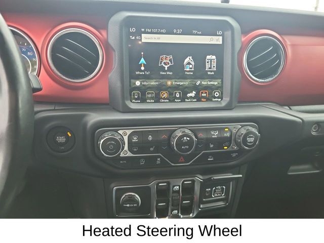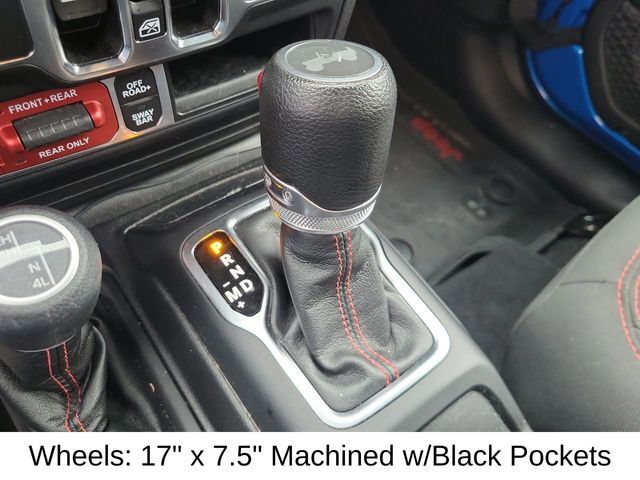 SOFT TOP, ABS brakes, AM/FM radio: SiriusXM, Apple CarPlay/Android Auto, Auto-dimming Rear-View mirror, Automatic temperature control, Brake assist, Cold Weather Group, Electronic Stability Control, Fully automatic headlights, Heated Front Seats, Heated Steering Wheel, Integrated roll-over protection, ParkView Rear Back-Up Camera, Performance Suspension, Premium Cloth Low-Back Bucket Seats, Quick Order Package 25R, Remote keyless entry, Steering wheel mounted audio controls, Stop-Start Dual Battery System, Traction control, Wheels: 17" x 7.5" Machined w/Black Pockets.