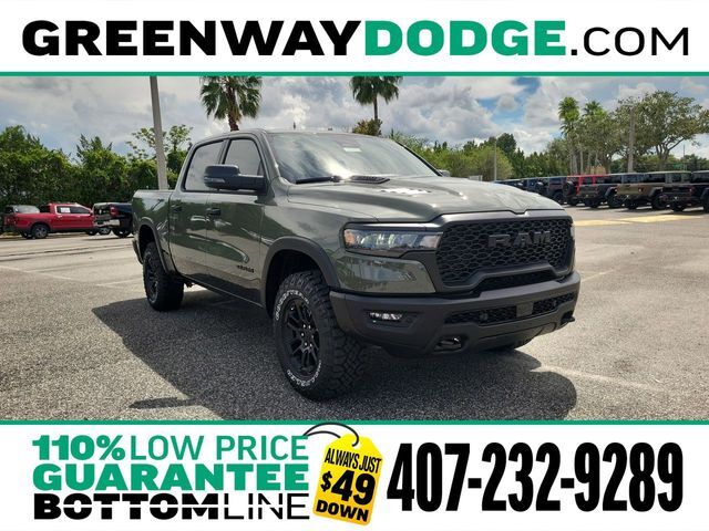 Rebel 4D Crew Cab Canyon Lake 3.0L I6 4WD 2026 Ram 1500 RebelDO NOT COMPROMISE!! We aim to have the BEST SELECTION, MOST COMPETITIVE PRICING, the best SERVICE!! We have the LARGEST selection, the HIGHEST TRADE values, MULTIPLE FINANCE options, the BEST financing terms, and the FRIENDLIEST staff. We pride ourselves in taking EXCEPTIONAL care of our customers.Always just $49 down. Price includes: $3500 - 2026 National Retail Consumer Cash . Exp. 11/03/2025