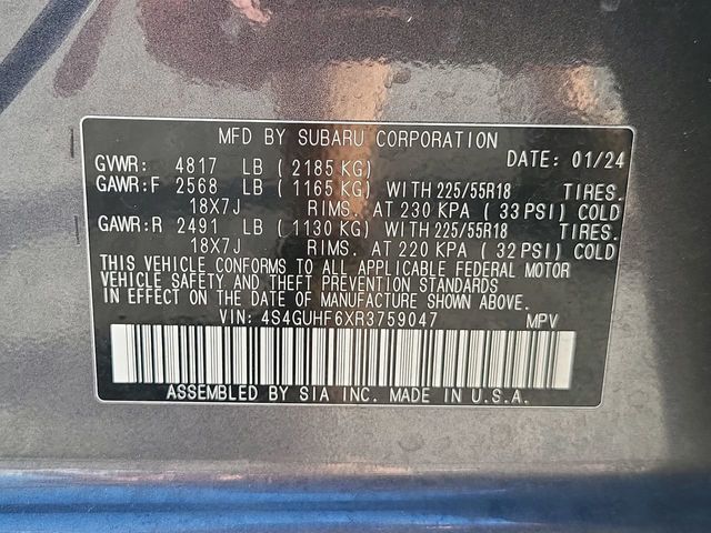 26/33 City/Highway MPG, POWER MOON ROOF, AWD, 10-Way Power Driver's Seat, ABS brakes, All-Weather Floor Liners, Auto-Dimming Exterior Mirror w/Approach Light, Auto-Dimming Mirror w/Compass & HomeLink, Automatic temperature control, Blind Spot Detection w/Rear Cross-Traffic Alert, BSD/RCTA & Power Driver Seat & Power Moonroof, Exterior Parking Camera Rear, Four wheel independent suspension, Fully automatic headlights, Heated Front Bucket Seats, Popular Package #4A, Power Moonroof, Radio: Subaru STARLINK 11.6" Multimedia Plus Sys, Rear Bumper Cover, Remote keyless entry, Splash Guards, Steering wheel mounted audio controls, Turn signal indicator mirrors, Wheels: 18" x 7.0J Dark Gray Aluminum Alloy. CARFAX One-Owner.