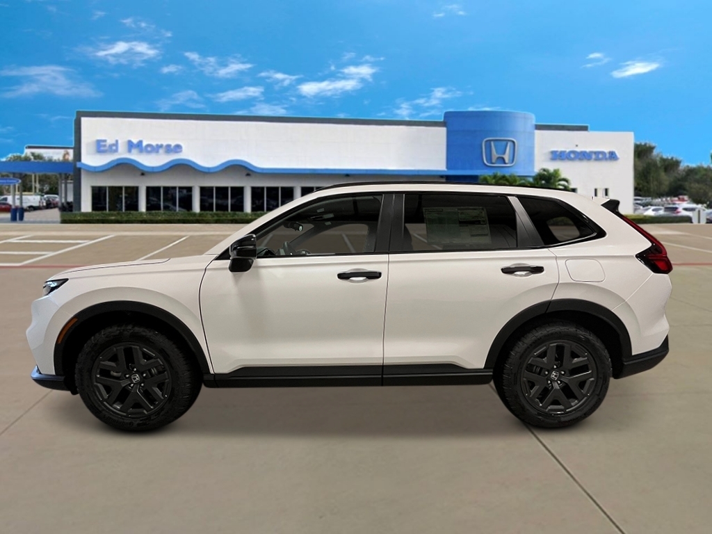Platinum White Pearl 2026 Honda CR-V Hybrid TrailSport 38/33 City/Highway MPG 4-Wheel Disc Brakes, 8 Speakers, ABS brakes, Adaptive Cruise Control: Adaptive Cruise Control (ACC) with Low-Speed Follow, Air Conditioning, Alloy wheels, Apple CarPlay/Android Auto, Auto High-beam Headlights, Automatic temperature control, Blind Spot Information (BSI) System warning, Brake assist, Bumpers: body-color, Cloth Seat Trim, Compass, Delay-off headlights, Driver door bin, Driver vanity mirror, Dual front impact airbags, Dual front side impact airbags, Electronic Stability Control, Exterior Parking Camera Rear, Four wheel independent suspension, Front anti-roll bar, Front Bucket Seats, Front Center Armrest, Front dual zone A/C, Front reading lights, Fully automatic headlights, Heated door mirrors, Heated Front Bucket Seats, Heated front seats, Heated steering wheel, Illuminated entry, Knee airbag, Leather Shift Knob, Leather steering wheel, Low tire pressure warning, Occupant sensing airbag, Outside temperature display, Overhead airbag, Overhead console, Panic alarm, Passenger door bin, Passenger vanity mirror, Power door mirrors, Power driver seat, Power moonroof, Power steering, Power windows, Radio data system, Radio: 320-Watt AM/FM Audio System, Rear anti-roll bar, Rear reading lights, Rear seat center armrest, Rear side impact airbag, Rear window defroster, Rear window wiper, Remote keyless entry, Security system, Speed control, Speed-sensing steering, Speed-Sensitive Wipers, Split folding rear seat, Spoiler, Steering wheel mounted audio controls, Telescoping steering wheel, Tilt steering wheel, Traction control, Trip computer, Turn signal indicator mirrors, Variably intermittent wipers, and Wheels: 18Shark Gray.