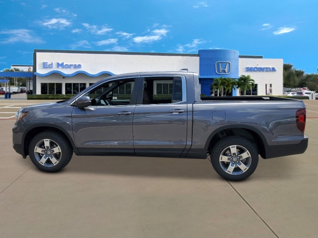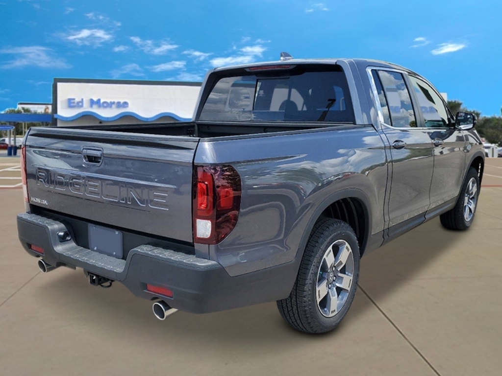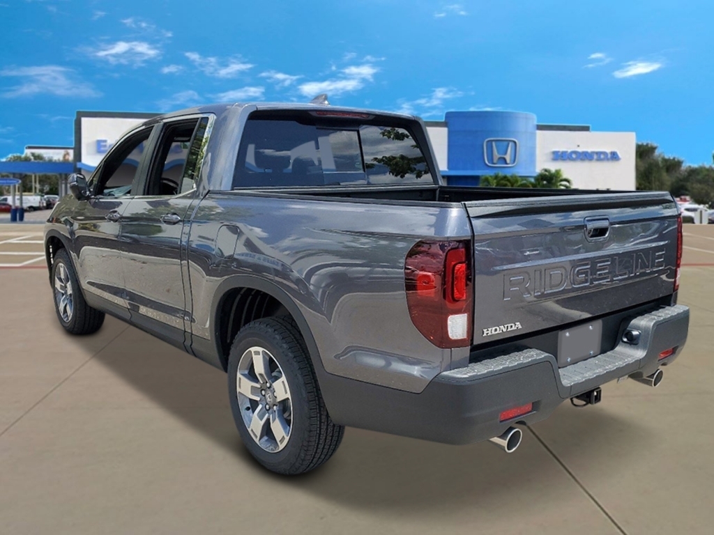 Modern Steel Metallic 2025 Honda Ridgeline RTL 18/24 City/Highway MPG 4-Wheel Disc Brakes, 4.33 Axle Ratio, 7 Speakers, ABS brakes, Air Conditioning, Alloy wheels, AM/FM radio: SiriusXM, Auto-dimming Rear-View mirror, Automatic temperature control, Blind Spot Information (BSI) System warning, Bluetooth� Hands-Free Link, Brake assist, Bumpers: body-color, Compass, Delay-off headlights, Driver door bin, Driver vanity mirror, Drivers Seat Mounted Armrest, Dual front impact airbags, Dual front side impact airbags, Electronic Stability Control, Emergency communication system: HondaLink Assist, Exterior Parking Camera Rear, Four wheel independent suspension, Front anti-roll bar, Front Bucket Seats, Front dual zone A/C, Front fog lights, Front reading lights, Fully automatic headlights, Garage door transmitter: HomeLink, Heated door mirrors, Heated Front Bucket Seats, Heated front seats, Illuminated entry, Leather Seat Trim, Leather steering wheel, Low tire pressure warning, Memory seat, Occupant sensing airbag, Outside temperature display, Overhead airbag, Overhead console, Panic alarm, Passenger door bin, Passenger seat mounted armrest, Passenger vanity mirror, Power door mirrors, Power driver seat, Power moonroof, Power passenger seat, Power steering, Power windows, Radio data system, Radio: 215-Watt Audio System w/7 Speakers, Rear air conditioning, Rear anti-roll bar, Rear reading lights, Rear seat center armrest, Rear step bumper, Rear window defroster, Remote keyless entry, Security system, SiriusXM, Speed control, Speed-sensing steering, Split folding rear seat, Steering wheel mounted audio controls, Tachometer, Telescoping steering wheel, Tilt steering wheel, Traction control, Trip computer, Turn signal indicator mirrors, Variably intermittent wipers, and Wheels: 18Pewter Gray Machine-Finished Alloy.