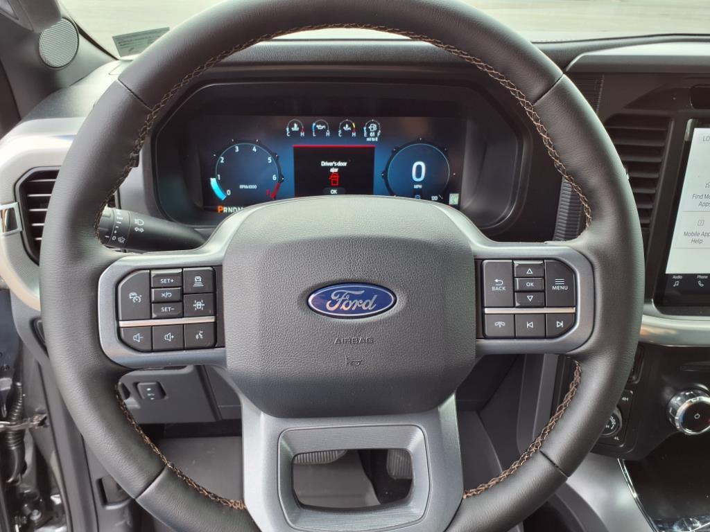 EquipmentThis 1/2 ton pickup offers Apple CarPlay for seamless connectivity. Protect the Ford F-150 from unwanted accidents with a cutting edge backup camera system. Keep your hands warm all winter with a heated steering wheel in this model . This 2025 Ford F-150 has automated speed control that adjusts to maintain a safe following distance, enhancing highway driving convenience. This 2025 Ford F-150 features a hands-free Bluetooth phone system. This unit comes equipped with Android Auto for seamless smartphone integration on the road. The leather seats in it are a must for buyers looking for comfort, durability, and style. Heated seats for those cold winter days are included in this vehicle. This Ford F-150 warns of approaching vehicles with Cross-Traffic Alert. Youll never again be lost in a crowded city or a country region with the navigation system on this vehicle. This 1/2 ton pickup projects refinement with a racy metallic gray exterior.PackagesEquipment Group 502A High: Ambient Lighting - Ice Blue Color Only; ActiveX Seating Material Bucket Seats; 20Chrome-Like PVD Wheels; B&O Unleashed Sound System by Bang & Olufsen Radio; 2nd Row Heated Seats; 6Extended Angular Bright Anodized Step Bar; Power-Sliding Rear Window; Heads-Up Display; Illuminated Driver and Passenger Visors; 275/60R20 All-Terrain Tires. Mobile Office Package: Wireless Charging; Partitioned Lockable Rear Storage; Console Worksurface. Tow/haul Package: Integrated Trailer Brake Controller; Electronic Locking with 3.73 Axle Ratio. Electronic Locking with 3.73 Axle Ratio. Retractable Rear Center Step. Power Telescoping/glass/folding Trailer Tow Mirrors. Tray Style Floor Liner with Carpet Mats. **Equipment listed is based on original vehicle build and subject to change. Please confirm the accuracy of the included equipment by calling the dealer prior to purchase.**