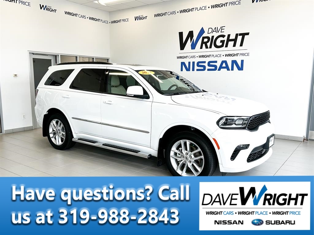 AWD, Complimentary 2 year / 100,000 miles limited powertrain warranty*, E-Certified. White Knuckle Clearcoat More for your trade at Dave Wright! Wright cars, Wright place, Wright price! Text Lauren at (319)844-4632 with any questions! 2022 Dodge DurangoGT Plus 3.6L V6 24V VVT