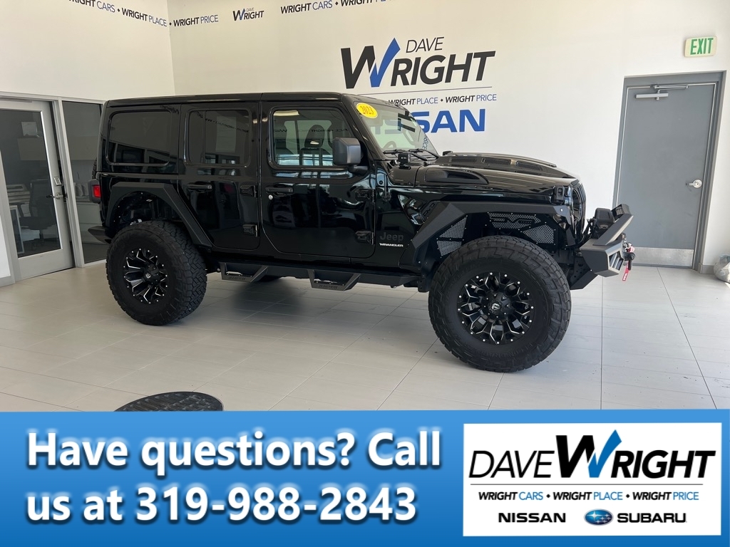 (319) 393-0640, DAVEWRIGHTAUTO.COMLOWEST MILEAGE OF ITS KIND AVAILABLE IN IOWA! ARE YOU SEARCHING FOR A VEHICLE TO HAVE SOME FUN IN FROM A DEALER THAT YOU CAN TRUST YOUR SEARCH IS OVER! STOP IN AT OUR AWARD-WINNING DEALERSHIP AND CHECK OUT THIS DAVE WRIGHT-CERTIFIED WRANGLER TODAY! THIS SAHARA IS LOADED WITH USER-FRIENDLY FEATURES AND ONE OWNER ACCIDENT-FREE! AM/FM radio: SiriusXM, Apple CarPlay/Android Auto, Auto-dimming Rear-View mirror, Automatic temperature control, Aux Battery, Compass, Emergency communication system: SiriusXM Guardian, Garage door transmitter, Heated door mirrors, Heated Front Seats, Heated Steering Wheel, Heavy Duty Suspension w/Gas Shocks, Navigation System, Non-Lock Fuel Cap w/o Discriminator, ParkView Rear Back-Up Camera, Power door mirrors, Power windows, Radio: Uconnect 4C Nav w/8.4 Display, Rear Window Wiper/Washer, Remote keyless entry, Steering wheel mounted audio controls, Stop-Start Dual Battery System, Telescoping steering wheel, Tilt steering wheel. Sahara, 4WD, Black Clearcoat, Black w/Cloth Low-Back Bucket Seats. More for your trade at Dave Wright! Wright cars, Wright place, Wright price! Contact us with any questions! 2023 Jeep WranglerSahara 3.6L V6 24V VVT