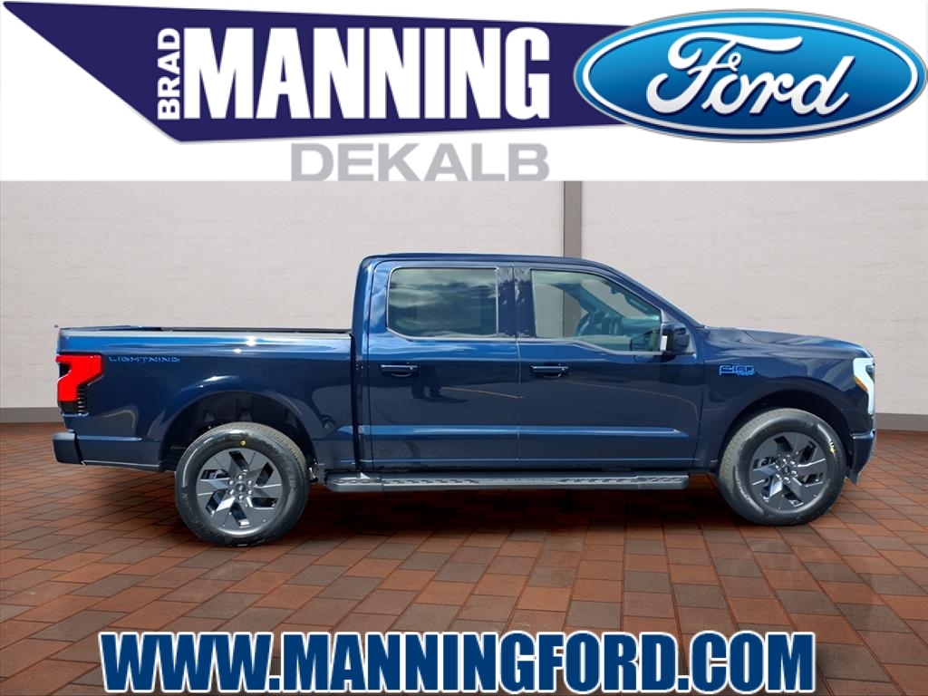 The Manning Family has been in the automobile business for over 100 years!2025 Ford F-150 Lightning Lariat 78/63 City/Highway MPGBrad Manning Ford has been in the automobile business for over 100 years!!! Buy with peace of mind knowing most of our used vehicles come with a 90 day/ 3,000 mile powertrain warranty! Serving the communities of DeKalb, Sycamore, Rochelle, Elburn, Hinckley, Geneva, St Charles, Sandwich, Malta, Genoa, Hampshire, Aurora, Oswego, Oregon, Kirkland, Kingston, Waterman, and Shabbona. Equipment Group 511A Standard, 4-Wheel Disc Brakes, 8 Speakers, ABS brakes, ActiveX Trimmed Heated & Ventilated Seats, Adjustable pedals, Air Conditioning, Alloy wheels, Auto High-beam Headlights, Auto tilt-away steering wheel, Auto-dimming door mirrors, Auto-dimming Rear-View mirror, Automatic temperature control, Brake assist, Bumpers: body-color, Compass, Delay-off headlights, Driver door bin, Driver vanity mirror, Dual front impact airbags, Dual front side impact airbags, Electronic Stability Control, Emergency communication system: SYNC 4 911 Assist, Four wheel independent suspension, Front anti-roll bar, Front Bucket Seats, Front Center Armrest, Front dual zone A/C, Front License Plate Bracket, Front reading lights, Fully automatic headlights, Heated door mirrors, Heated front seats, Heated rear seats, Heated steering wheel, Illuminated entry, Illuminated running boards, Knee airbag, Low tire pressure warning, Memory seat, Mobile Power Cord (120/240V), Navigation system: Connected Navigation, Occupant sensing airbag, Outside temperature display, Overhead airbag, Overhead console, Panic alarm, Passenger door bin, Passenger vanity mirror, Pedal memory, Power door mirrors, Power driver seat, Power moonroof, Power passenger seat, Power steering, Power windows, Radio data system, Radio: B&O Sound System by Bang & Olufsen, Rain sensing wipers, Rear anti-roll bar, Rear reading lights, Rear seat center armrest, Rear step bumper, Rear window defroster,
