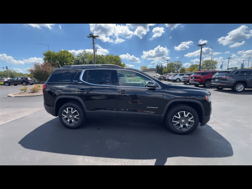 Backup Camera, Remote Start, Pwr Dr Seat, Forward Collision Alert, Side Blind Zone Alert, Rear Cross Traffic Alert, Lane Departure Warning, Lane Change Alert, Lane Keep Assist, Rear Park Assist, Heated Seats, Power Liftgate, Apple CarPlay, Aluminum Wheels, Carfax Buyback Guarantee, Acadia SLE, 4D Sport Utility, 2.0L Turbocharged, 9-Speed Automatic, FWD, Ebony Twilight Metallic, Jet Black Cloth, 120-Volt Power Outlet, 3rd row seats: split-bench, 4-Way Manual Driver Seat Adjuster, 4-Way Manual Passenger Seat Adjuster, 4-Wheel Disc Brakes, 6-Passenger (2-2-2 Seating Configuration), 6-Speaker Audio System Feature, 8-Way Power Driver Seat Adjuster, ABS brakes, Apple CarPlay/Android Auto, Auto High-beam Headlights, Brake assist, Brushed Aluminum Roof Rails, Bumpers: body-color, Compass, Delay-off headlights, Driver Convenience Package, Driver door bin, Driver vanity mirror, Dual front impact airbags, Dual front side impact airbags, Electronic Stability Control, Emergency communication system: OnStar and GMC Connected Services capable, Four wheel independent suspension, Front anti-roll bar, Front Bucket Seats, Front Center Armrest, Front reading lights, Fully automatic headlights, Hands Free Power Programmable Liftgate, Heated door mirrors, Heated Driver & Front Passenger Seats, Illuminated entry, Knee airbag, Low tire pressure warning, Occupant sensing airbag, Outside temperature display, Overhead airbag, Overhead console, Passenger door bin, Passenger vanity mirror, Power door mirrors, Power Driver Lumbar Control Seat Adjuster, Preferred Equipment Group 3SA, Premium audio system: GMC Infotainment System, Premium Cloth Seat Trim, Radio data system, Radio: AM/FM w/8 Diagonal Multi-Touch Display, Rear anti-roll bar, Rear reading lights, Rear window wiper, Remote Start, Security system, SiriusXM Radio, Speed control, Speed-sensing steering, Spoiler, Steering wheel mounted audio controls, Tachometer, Telescoping steering wheel, Tilt steering wheel, Traction control, Trip comp