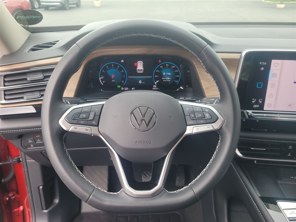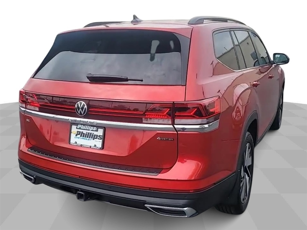 CarBravo Certified, AWD, Backup Camera, Remote Start, Pwr Dr Seat, Heated Seats, Heated Steering Wheel, Ventilated Seats, Power Liftgate, Apple CarPlay, 20 Wheels, Carfax Buyback Guarantee, Atlas 2.0T SE w/Technology, 4D Sport Utility, 2.0L TSI, 8-Speed Automatic with Tiptronic, AWD, Aurora Red Metallic, Titan Black w/Perforated V-Tex Leatherette Seating Surfaces, 4-Wheel Disc Brakes, 6 Speakers, ABS brakes, AM/FM radio: SiriusXM with 360L, Auto-dimming Rear-View mirror, Automatic temperature control, Brake assist, Bumpers: body-color, Compass, Driver door bin, Driver vanity mirror, Dual front impact airbags, Dual front side impact airbags, Electronic Stability Control, Emergency communication system: VW Car-Net Safe & Secure 5-year, Exterior Parking Camera Rear, Four wheel independent suspension, Front anti-roll bar, Front Bucket Seats, Front Center Armrest, Front dual zone A/C, Front fog lights, Front reading lights, Fully automatic headlights, Heated door mirrors, Heated front seats, Heated steering wheel, Heated/Actively Ventilated Front Bucket Seats, Illuminated entry, Low tire pressure warning, Occupant sensing airbag, Outside temperature display, Overhead airbag, Overhead console, Passenger door bin, Passenger vanity mirror, Perforated V-Tex Leatherette Seating Surfaces, Power door mirrors, Power driver seat, Power Liftgate, Radio data system, Radio: MIB3 Composition Media, Rain sensing wipers, Rear air conditioning, Rear anti-roll bar, Rear reading lights, Rear seat center armrest, Rear window defroster, Rear window wiper, Remote keyless entry, Security system, Speed control, Speed-sensing steering, Split folding rear seat, Spoiler, Standard Suspension, Steering wheel mounted audio controls, Tachometer, Telescoping steering wheel, Tilt steering wheel, Traction control, Trip computer, Turn signal indicator mirrors, Variably intermittent wipers, Ventilated front seats, Wheels: 20 2-Tone Machined Alloy. 2024 Volkswagen Atlas Aurora Red Metallic 2.0T SE w/Techno