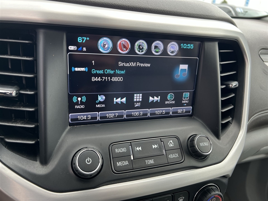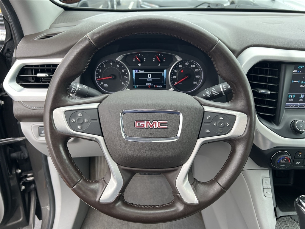 CarBravo Certified, Carfax Buyback Guarantee, No Added Cert. Fees, Bose Audio, NEW Tires!, Navigation, Heated Seats, Apple CarPlay, Keyless Entry, Pedestrian Detection, Side Blind Zone Alert, Rear Cross Traffic Alert, Backup Camera, BLUETOOTH, Power Windows/Locks, Power Seating, PUSH BUTTON START!, Remote Start, Power Liftgate, Lane Departure Warning, Cruise Control, Blind Spot Monitoring, Acadia SLT-1, 4D Sport Utility, 3.6L V6 SIDI, 6-Speed Automatic, FWD, Smokey Quartz Metallic, Cocoa/ Light Ash Gray Leather, 155 Amp Alternator, 18 x 7.5 Aluminum (4) Wheels, 4-Wheel Disc Brakes, 8-Way Power Front Passenger Seat Adjuster, ABS brakes, AM/FM radio: SiriusXM, Apple CarPlay/Android Auto, Auto-dimming door mirrors, Auto-dimming Rear-View mirror, Automatic temperature control, Bose Premium 8-Speaker System, Brake assist, Bumpers: body-color, Compass, Delay-off headlights, Driver door bin, Driver vanity mirror, Dual front impact airbags, Dual front side impact airbags, Dual SkyScape 2-Panel Power Sunroof, Electronic Stability Control, Emergency communication system: OnStar and GMC connected services capable, Exterior Parking Camera Rear, Four wheel independent suspension, Front anti-roll bar, Front Bucket Seats, Front Center Armrest, Front dual zone A/C, Front fog lights, Front reading lights, Fully automatic headlights, Garage door transmitter, Heated door mirrors, Heated Driver & Front Passenger Seats, Illuminated entry, Knee airbag, Low tire pressure warning, Occupant sensing airbag, Outside temperature display, Overhead airbag, Overhead console, Panic alarm, Passenger door bin, Passenger vanity mirror, Perforated Leather-Appointed Seat Trim, Power door mirrors, Power Driver Lumbar Control Seat Adjuster, Power driver seat, Power Liftgate, Power Passenger Lumbar Control Seat Adjuster, Power passenger seat, Power steering, Power windows, Preferred Equipment Group 4SA, Premium audio system: GMC Infotainment System, Rear air conditioning, Rear anti-roll bar, Rear reading