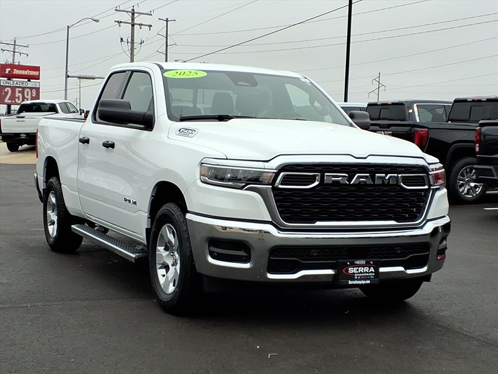 Meet the 2025 Ram 1500 Tradesman--the no-nonsense full-size pickup that wakes up early, drinks its coffee black, and gets stuff DONE. This used Ram 1500 Tradesman brings legendary Ram capability, a tough-as-nails design, and modern tech without the fancy fluff (because work trucks dont need mood lighting). With a powerful engine, impressive towing capacity, and a durable bed ready for lumber, tools, or weekend toys, this 2025 Ram 1500 pickup is perfect for job sites, road trips, and Home Depot runs that somehow cost $400. Comfortable, reliable, and built to work harder than your group chat, this used Ram 1500 Tradesman for sale is proof that practical can still be pretty awesome. Strong. Reliable. Zero drama. Come grab this Ram before someone else puts it to work first. 3.6L V6 24V VVT 19/24 City/Highway MPG 2025 Ram 1500 Tradesman 4D Quad Cab Bright White Clearcoat We are Central Illinois high volume, ONE PRICE-REAL TIME MARKET BASED PRICING Dealer. We have more inventory and offer a better selection because we buy in volume. We also offer a wide selection of Certified vehicles. Our Finance Department can provide excellent terms for all types of Credit.