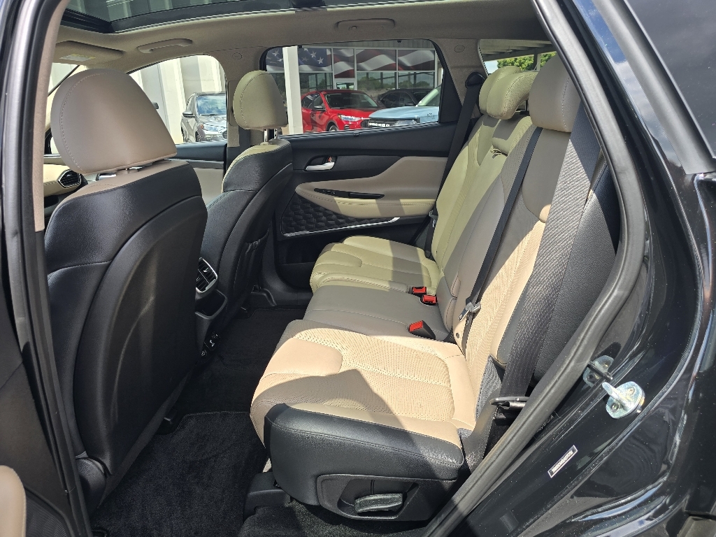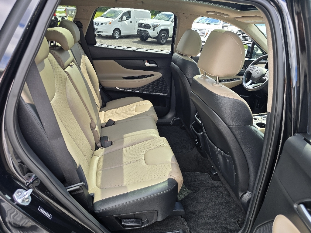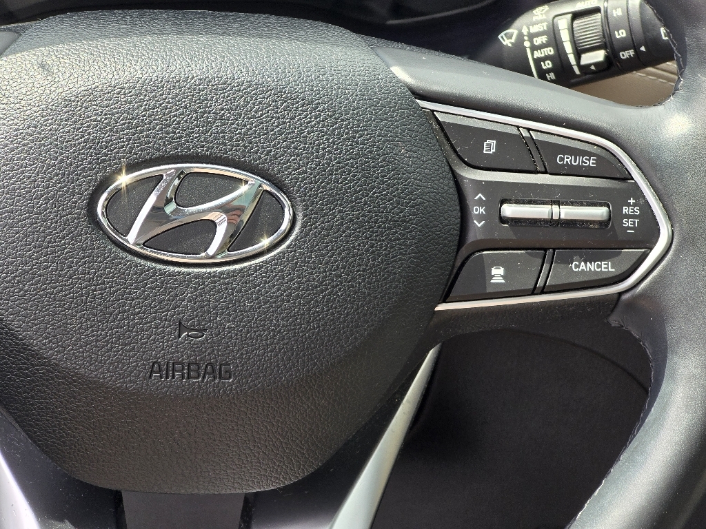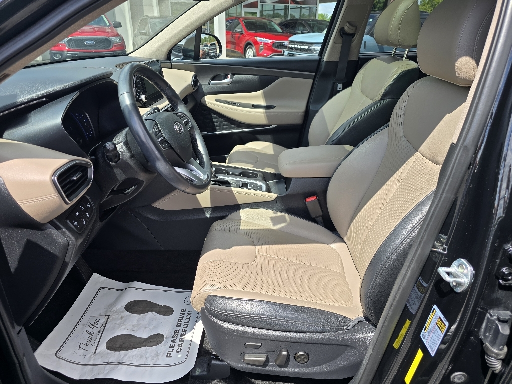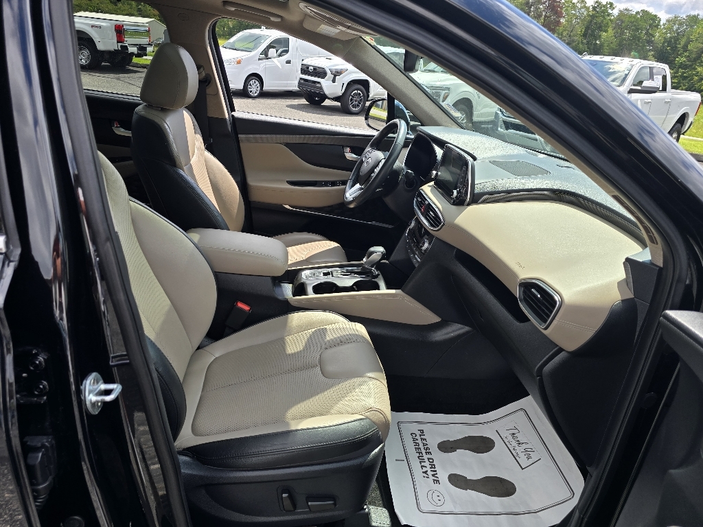 Check out all these great optionsOption Group 01, 12 Speakers, 4-Wheel Disc Brakes, ABS brakes, Air Conditioning, Alloy wheels, AM/FM radio: SiriusXM, Apple CarPlay & Android Auto, Auto High-beam Headlights, Auto-dimming Rear-View mirror, Automatic temperature control, Axle Ratio 3.510, Brake assist, Bumpers: body-color, Cargo Net, Cargo Tray, Carpeted Floor Mats, Compass, Delay-off headlights, Driver door bin, Driver vanity mirror, Dual front impact airbags, Dual front side impact airbags, Electronic Stability Control, Emergency communication system, First Aid Kit, Four wheel independent suspension, Front anti-roll bar, Front Bucket Seats, Front Center Armrest, Front dual zone A/C, Front fog lights, Front reading lights, Fully automatic headlights, Garage door transmitter: HomeLink, Heads-Up Display, Heated & Ventilated Front Bucket Seats, Heated door mirrors, Heated front seats, Heated rear seats, Heated steering wheel, Illuminated entry, Leather Seating Surface, Leather Shift Knob, Leather steering wheel, Low tire pressure warning, Memory seat, Navigation System, Occupant sensing airbag, Outside temperature display, Overhead airbag, Overhead console, Panic alarm, Passenger door bin, Passenger vanity mirror, Power door mirrors, Power driver seat, Power Liftgate, Power moonroof, Power passenger seat, Power steering, Power windows, Radio: Infinity Premium AM/FM/MP3 Display Audio, Rain sensing wipers, Rear anti-roll bar, Rear Parking Sensors, Rear seat center armrest, Rear window defroster, Rear window wiper, Remote keyless entry, Security system, Speed control, Speed-sensing steering, Split folding rear seat, Spoiler, Steering wheel mounted audio controls, Tachometer, Telescoping steering wheel, Tilt steering wheel, Traction control, Trip computer, Turn signal indicator mirrors, Variably intermittent wipers, Ventilated front seats, and Wheels: 19 x 7.5J Alloy. CARFAX One-Owner. Twilight Black 2020 Hyundai Santa Fe Limited AWD 8-Speed Automatic with SHIFTRONIC 2.0L T