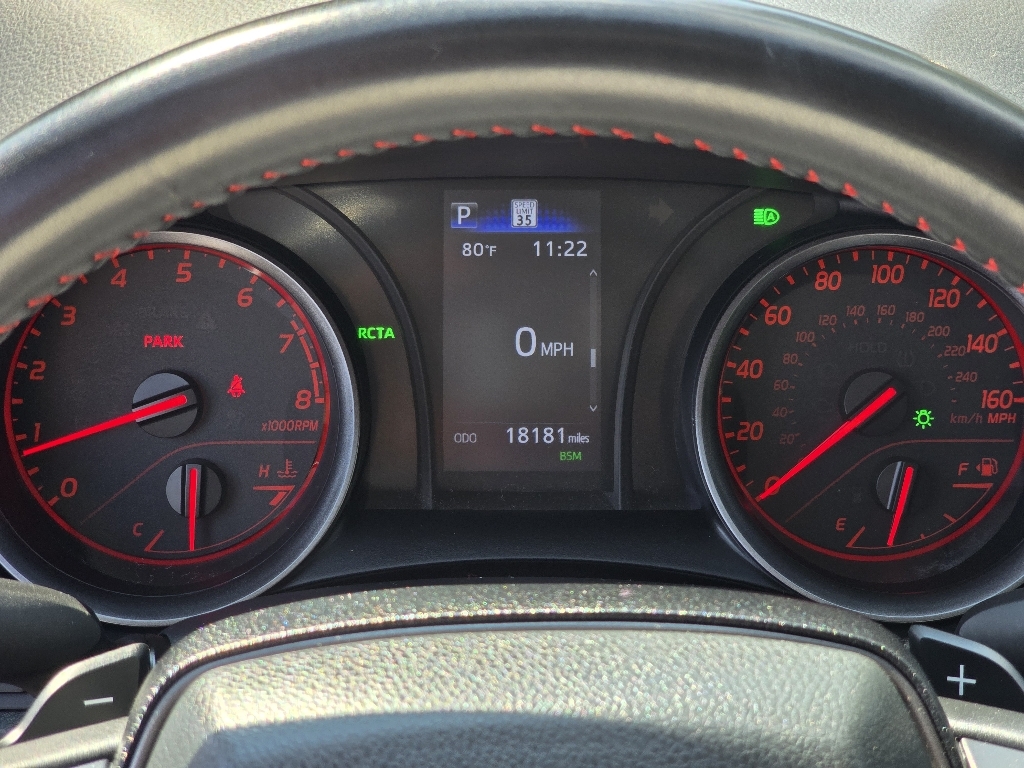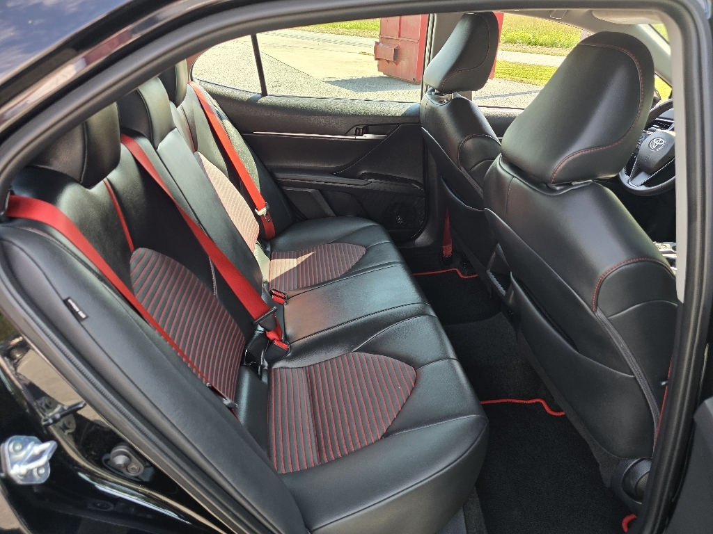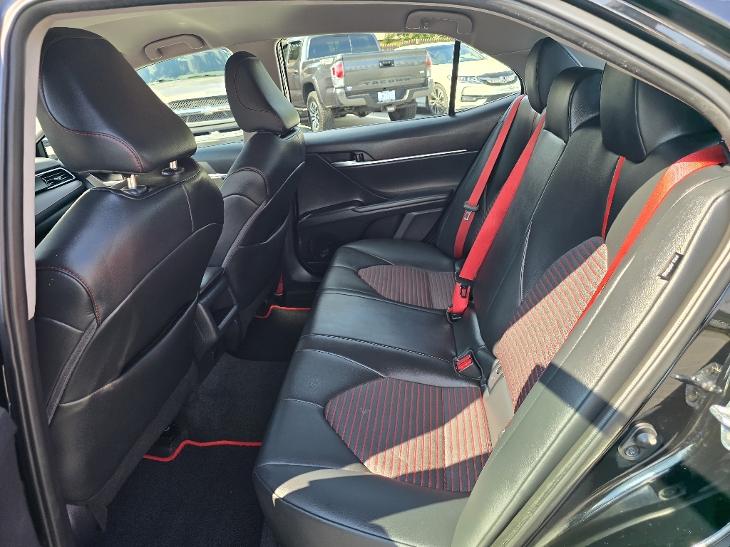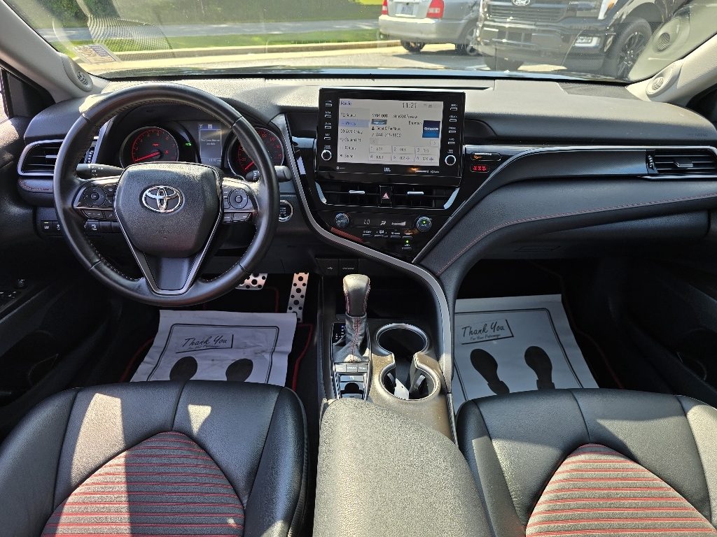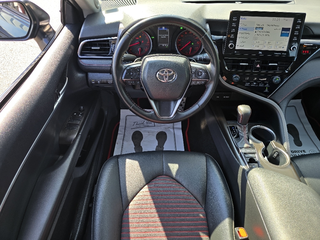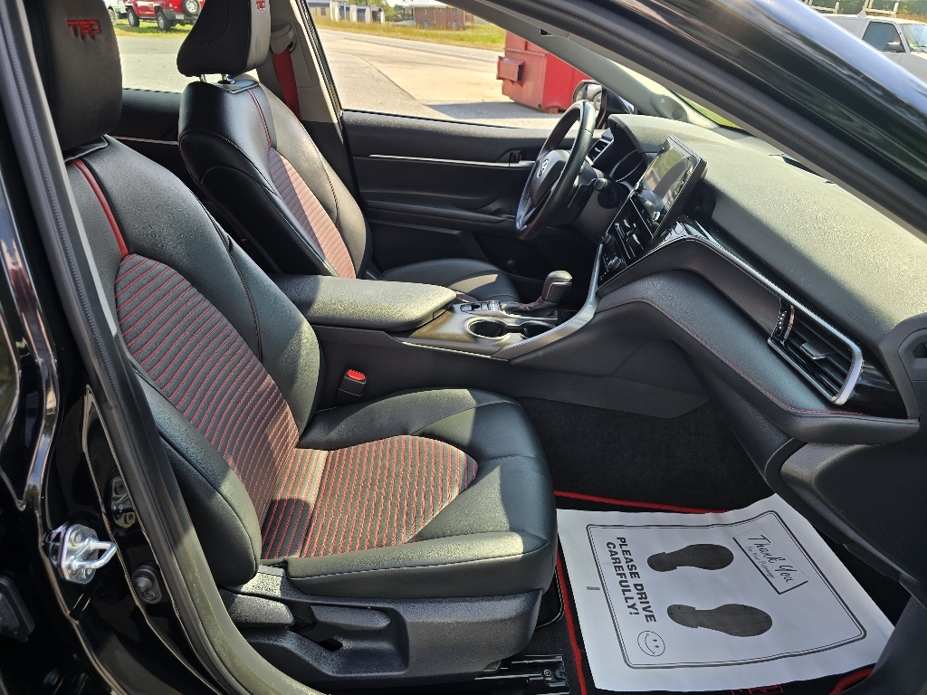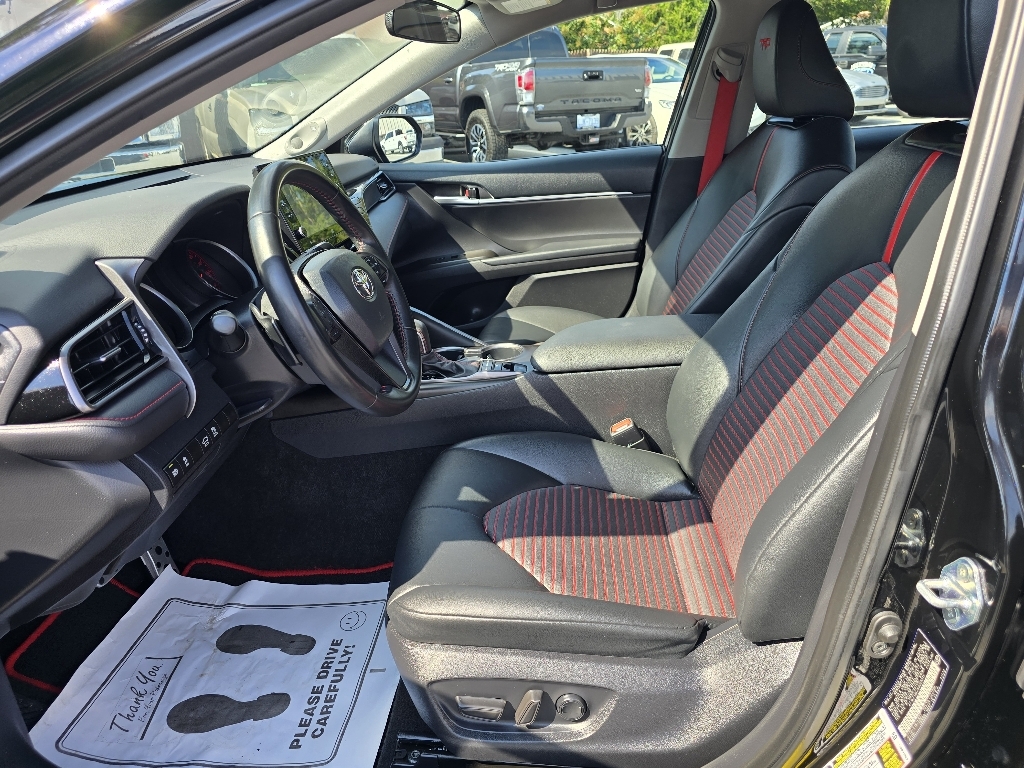 Check out all these great optionsABS brakes, Active Cruise Control, Alloy wheels, Electronic Stability Control, Front dual zone A/C, Heated door mirrors, Illuminated entry, Low tire pressure warning, Remote keyless entry, Traction control, 4-Wheel Disc Brakes, 6 Speakers, Air Conditioning, AM/FM radio: SiriusXM, Apple CarPlay/Android Auto, Auto High-beam Headlights, Automatic temperature control, Brake assist, Bumpers: body-color, Delay-off headlights, Driver door bin, Driver vanity mirror, Dual front impact airbags, Dual front side impact airbags, Emergency communication system: Safety Connect (1-year trial), Exterior Parking Camera Rear, Four wheel independent suspension, Front anti-roll bar, Front Bucket Seats, Front Center Armrest, Front reading lights, Fully automatic headlights, Knee airbag, Leather Shift Knob, Leather steering wheel, Occupant sensing airbag, Outside temperature display, Overhead airbag, Overhead console, Panic alarm, Passenger door bin, Passenger vanity mirror, Power door mirrors, Power driver seat, Power steering, Power windows, Radio data system, Radio: Audio, Rear anti-roll bar, Rear reading lights, Rear seat center armrest, Rear side impact airbag, Rear window defroster, Security system, Speed control, Speed-sensing steering, Spoiler, Sport SofTex Seat Trim w/Fabric Inserts, Steering wheel mounted audio controls, Tachometer, Telescoping steering wheel, Tilt steering wheel, Trip computer, Turn signal indicator mirrors, Variably intermittent wipers, and Wheels: 19 x 8.5J Alloy. CARFAX One-Owner. Midnight Black Metallic 2024 Toyota Camry TRD V6 FWD 8-Speed Automatic 3.5L V6 DOHC 24V ABS brakes, Active Cruise Control, Alloy wheels, Electronic Stability Control, Front dual zone A/C, Heated door mirrors, Illuminated entry, Low tire pressure warning, Remote keyless entry, Traction control.Odometer is 12247 miles below market average!