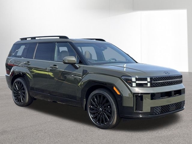 Recent Arrival! $5,367 off MSRP! Rockwood Green 2026 Hyundai Santa Fe Calligraphy Back up Camera, Best place to buy a used car, Bluetooth, Buy a used car, New Hyundai dealership near me, New Hyundai for sale near me, Used car deals this weekend, Used car for sale, Used car special, Used car specials, Used cars near Indianapolis, Used cars near me, Santa Fe Calligraphy, 4D Sport Utility, 2.5L I4, 8-Speed Automatic with SHIFTRONIC, AWD, Rockwood Green, Pecan Brown Leather. Santa Fe Calligraphy is nicely equipped with Option Group 01, Santa Fe Calligraphy, 4D Sport Utility, 2.5L I4, 8-Speed Automatic with SHIFTRONIC, AWD, Rockwood Green, Pecan Brown Leather, 12 Speakers, 3rd row seats: bench, 4-Wheel Disc Brakes, ABS brakes, Air Conditioning, Alloy wheels, AM/FM radio: SiriusXM, Apple CarPlay & Android Auto, Auto High-beam Headlights, Auto-dimming Rear-View mirror, Automatic temperature control, Brake assist, Bumpers: body-color, Cargo Cover/Screen, Cargo Net, Cargo Tray, Carpeted Floor Mats, Delay-off headlights, Driver door bin, Driver vanity mirror, Dual front impact airbags, Dual front side impact airbags, Electronic Stability Control, Emergency communication system, Exterior Parking Camera Rear, First Aid Kit, Four wheel independent suspension, Front anti-roll bar, Front Bucket Seats, Front Center Armrest, Front dual zone A/C, Front reading lights, Fully automatic headlights, Garage door transmitter: HomeLink, Heads-Up Display, Heated and Ventilated Front Bucket Seats, Heated door mirrors, Heated front seats, Heated rear seats, Heated steering wheel, Illuminated entry, Knee airbag, Leather steering wheel, Low tire pressure warning, Memory seat, Mudguards, Navigation System, Occupant sensing airbag, Outside temperature display, Overhead airbag, Overhead console, Panic alarm, Passenger door bin, Passenger vanity mirror, Power door mirrors, Power driver seat, Power Liftgate, Power moonroof, Power passenger seat, Power steering, Power windows, Quilted Premium Nappa Leather Seat Trim, Radio: AM/FM/HD Bose Premium Audio System, Rain sensing wipers, Rear anti-roll bar, Rear side impact airbag, Rear window defroster, Rear window wiper, Remote keyless entry, Security system, Speed control, Speed-sensing steering, Split folding rear seat, Spoiler, Steering wheel mounted audio controls, Tachometer, Telescoping steering wheel, Tilt steering wheel, Traction control, Trip computer, Turn signal indicator mirrors, Variably intermittent wipers, Ventilated front seats, an