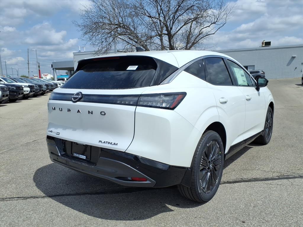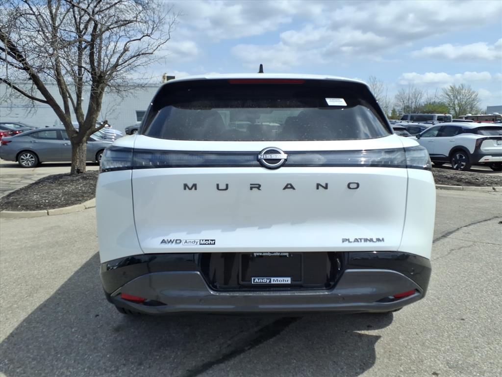 $4,000 off MSRP! White Pearl 2026 Nissan Murano Platinum AWD 9-Speed Automatic I4 Recent Arrival! 21/27 City/Highway MPG ANDY MOHR NISSAN OF INDIANAPOLIS has provided positive car buying experiences in Indianapolis, Plainfield, Avon, Brownsburg, Greenwood, Danville, Bloomington, Terre Haute, Columbus, Fishers, Carmel, Zionsville, Lebanon and all of Marion county since 1993. You consent to receive autodialed, pre-recorded and artificial voice telemarketing and sales calls, text messages and/or emails from or on behalf of Andy Mohr at the phone number and/or email provided in this application, including cell phone numbers. You understand that this consent is not a condition of purchase of a vehicle or any services from Andy Mohr. Price does not include Tax, Title, License and Dealer Fee; Price does include: $4000 - Nissan Customer Cash. Exp. 05/04/2026