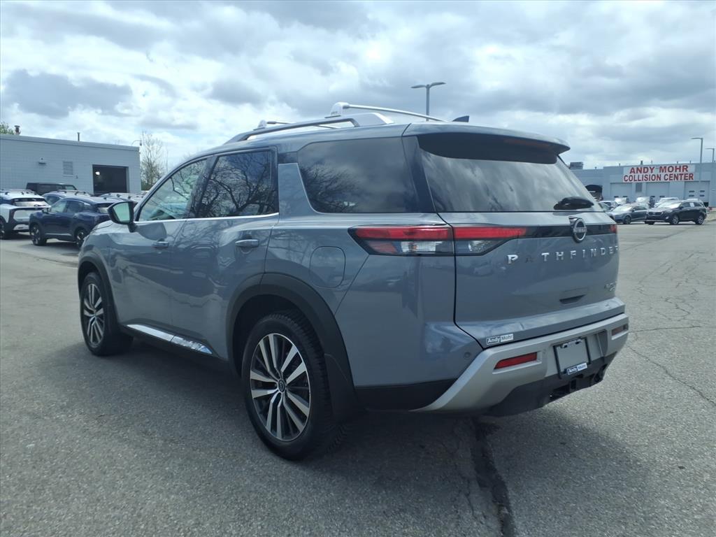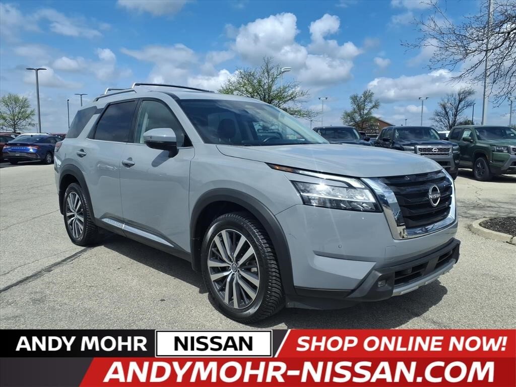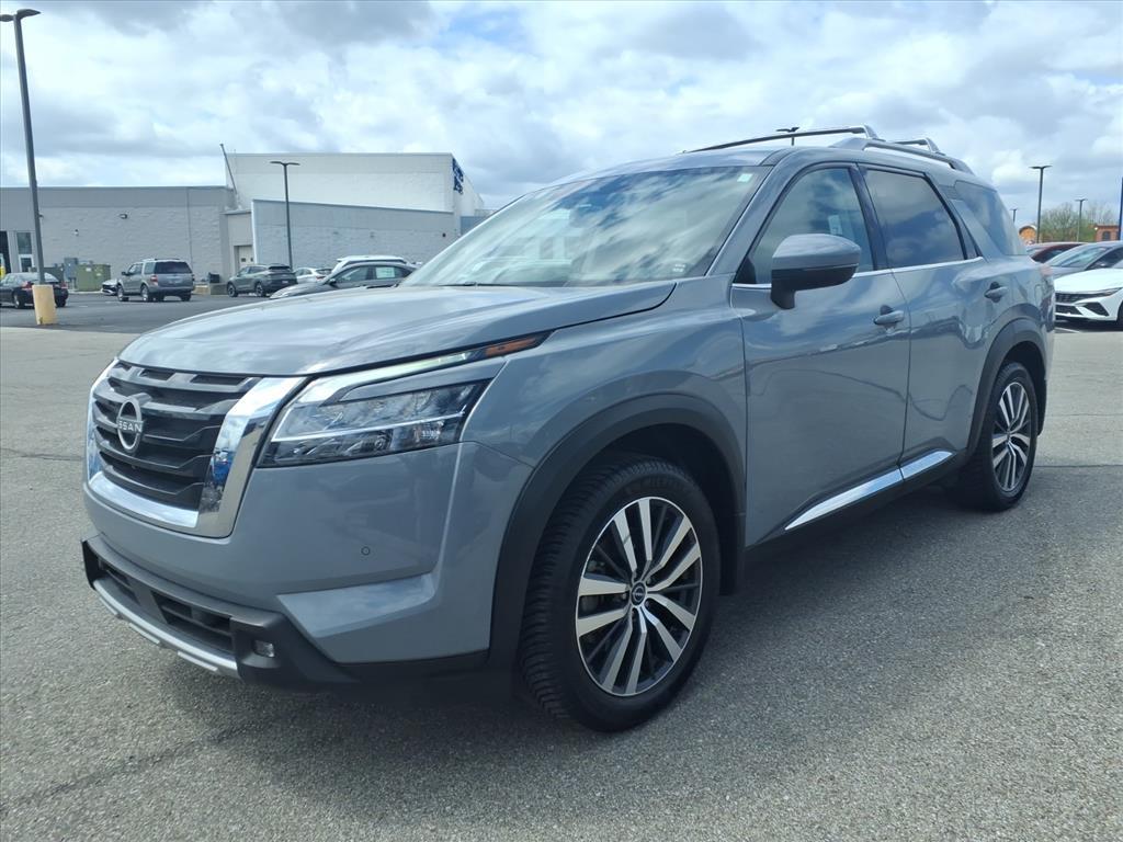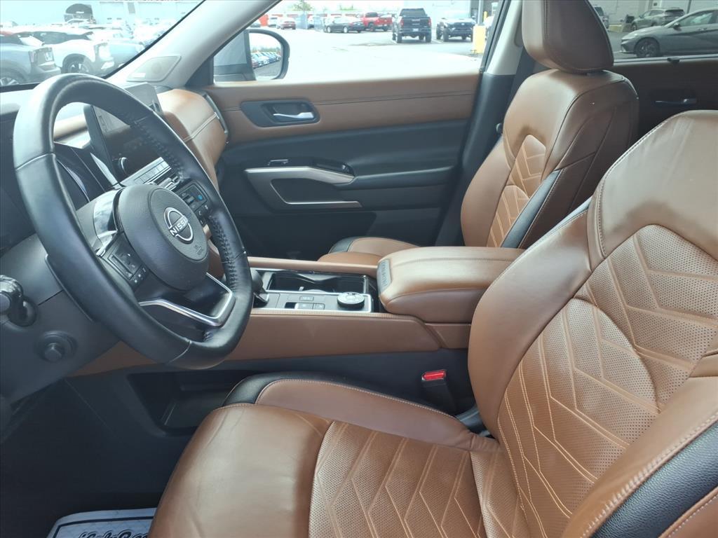 Discover the perfect blend of style, capability, and technology in the 2022 Nissan Pathfinder Platinum. This exceptional SUV is ready to elevate your driving experience with its impressive array of premium features and advanced technologies. - Fully Loaded with Impressive Features: The Pathfinder Platinum boasts a comprehensive list of premium amenities, including - Blind Spot Monitoring, Heated and Cooled Seats, Bose Premium Audio System, and Keyless Access with Push Button Start. - Versatile and Capable: With its powerful V6 engine, 9-speed automatic transmission, and 4-wheel drive, the Pathfinder Platinum delivers exceptional performance and off-road capability. The Tow Package and Cross Bars further enhance its versatility. - Cutting-Edge Technology: Stay connected and in control with the NissanConnect Navigation system, Apple CarPlay, Android Auto, and a Heads-Up Display. The Cargo Package and Bench Seat Carpeted Floor Mats provide added convenience and organization. - Refined Comfort and Style: Indulge in the luxurious Semi-Aniline Leather Seating Surfaces, Heated Steering Wheel, and Power Liftgate. The 20-inch Alloy Wheels with Unique Finish and Spoiler add a touch of elegance to the Pathfinders bold exterior. - Advanced Safety: Prioritize your well-being with features like Blind Spot Monitors, Lane Departure Warning, and Automatic High-Beam Headlights. The Rear Camera and Parking Sensors provide added peace of mind. - One-Owner and Clean CARFAX: This Pathfinder Platinum is a one-owner vehicle with a clean CARFAX history, ensuring you can purchase with confidence. Experience the ultimate in versatility, comfort, and technology with the 2022 Nissan Pathfinder Platinum. Schedule a test drive today and discover how this exceptional SUV can elevate your driving experience.