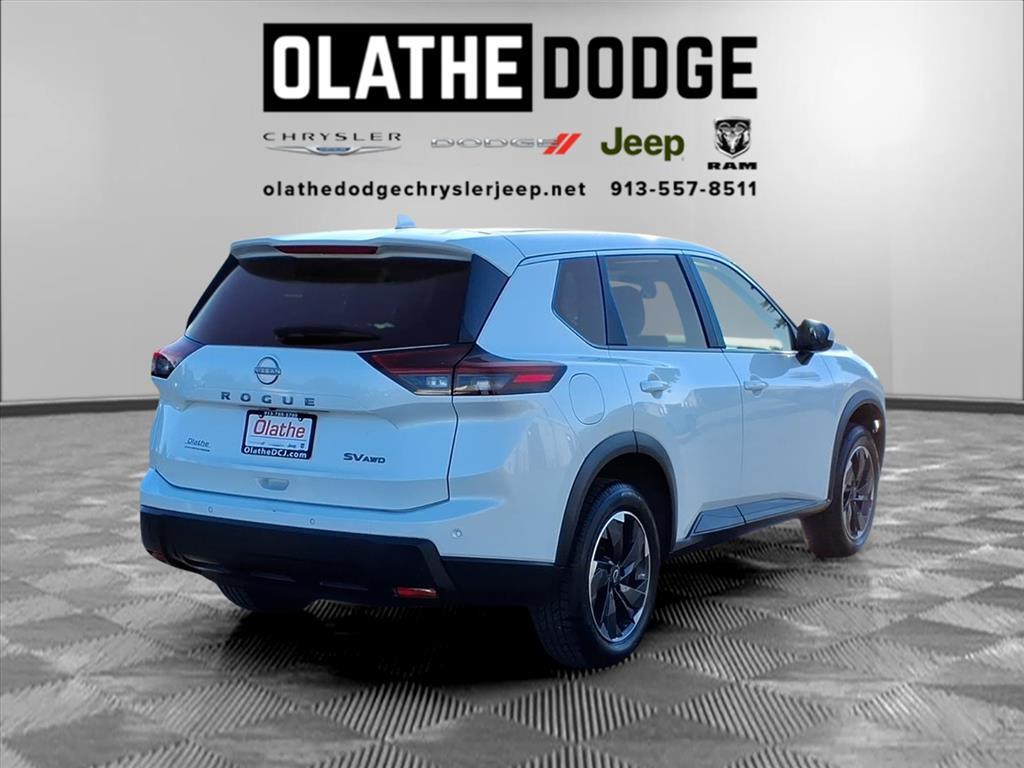 Olathe Dodge Chrysler Jeep Proudly Presents: Everest White Pearl 2024 Nissan Rogue SV Recent Arrival! Clean CARFAX. CARFAX One-Owner. Priced below KBB Fair Purchase Price! 28/35 City/Highway MPG AWD. In need of a new or pre-owned Chrysler, Dodge, Ram or Jeep vehicle Looking for financing, vehicle service or maintenance tips, collision repair, or a specific auto part You're in luck! Olathe Dodge Chrysler Jeep Ram supplies all of the above and does so with excellence. We are located at 15500 W 117th Street, Olathe, KS, 66062, and surrounding areas with a staff of friendly individuals dedicated to customer satisfaction. Stop by today to experience our extensive brand knowledge and the impressive set of services we provide. If you still have questions, call us at Call Sales Phone Number913-815-8482.