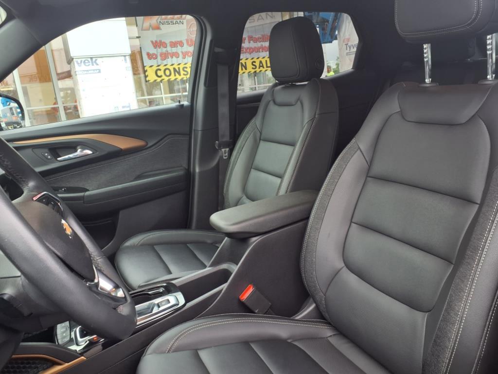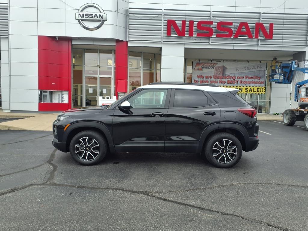 This vehicle is a 2023 Chevrolet SUV 4x4 Trailblazer ACTIV, with a 1.3 liter 3 cylinder engine, and turbocharged power. It has a black/gb0 exterior and a jet black/arizona accent interior, giving it a sleek and modern look. It has a 5 out of 5 star crash test rating and 28,094 miles driven, making it a reliable and efficient car. It has many features such as touch screen display, Bluetooth audio connection, hill start assist, part time four wheel drive, Bluetooth phone connectivity, and leather seats. This car has great fuel economy at 26 mpg in the city and 30 mpg on the highway, making it an economical choice for anyone looking for a reliable car. Contact Details: Kerry Nissan of Florence, 8053 Burlington Pike, Florence, KY, 41042, jwhitson@kerrynissan.com, 8593718191.