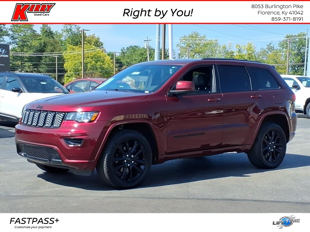 This 2019 Jeep Grand Cherokee Altitude is a powerful and reliable motorcar. It has a 3.6 liter 6 cylinder engine with sequential port fuel injection, and has driven 82,360 miles. It has a velvet red pearl coat exterior and a black x9 interior, with a crash test rating of 5 out of 5 stars. This vehicle also features touch screen display, Bluetooth audio connection, blind spot sensor, hill start assist, full time four wheel drive, Apple Carplay ready, navigation system with voice recognition, and navigation with touch screen display. This automobile is sure to turn heads wherever it goes! Contact Details: Kerry Nissan of Florence, 8053 Burlington Pike, Florence, KY, 41042, jwhitson@kerrynissan.com, 8593718191.
