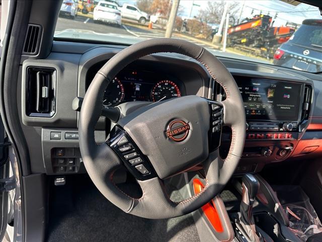This vehicle is a 2025 Nissan Frontier PRO-4X Crew Cab 4x4, with a boulder gray pearl exterior and charcoal w/lava red st interior. It has a 3.8 liter 6 cylinder engine with fuel injection, and an impressive 16 mpg in the city and 20 mpg on the highway. It has been crash tested for safety and received a 4 out of 5 stars rating, making it one of the safest vehicles on the road today. With its advanced technology and sleek design, this car is sure to turn heads wherever it goes. Contact Details: Kerry Nissan of Florence, 8053 Burlington Pike, Florence, KY, 41042, jwhitson@kerrynissan.com, 8593718191.