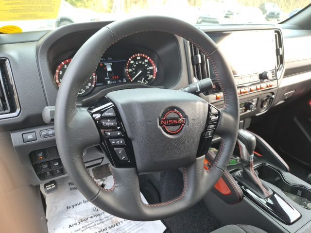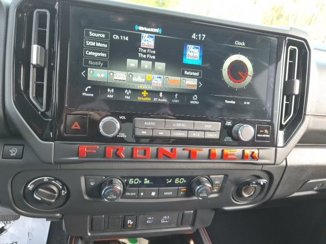 2025 Nissan Frontier PRO-4X Super Black Rear Back Up Camera, Blue tooth/ Hands Free Calling!, Blue Tooth Streaming, USB/AUX, ALL WHEEL DRIVE, 17" Painted Alloy Wheels, 3.692 Axle Ratio, 4-Wheel Disc Brakes, 6 Speakers, ABS brakes, Air Conditioning, Alloy wheels, AM/FM radio: SiriusXM, Anti-whiplash front head restraints, Auto High-beam Headlights, Automatic temperature control, Blind Spot Warning, Brake assist, Bumpers: body-color, Delay-off headlights, Driver door bin, Driver vanity mirror, Dual front impact airbags, Dual front side impact airbags, Electronic Stability Control, Electronic Tailgate Lock, Emergency communication system, Essentials Kit, Front anti-roll bar, Front Bucket Seats, Front Center Armrest, Front dual zone A/C, Front fog lights, Front reading lights, Front wheel independent suspension, Fully automatic headlights, Illuminated entry, Knee airbag, Leather Shift Knob, Leather steering wheel, Low tire pressure warning, NissanConnect Services & Wi-Fi Hotspot Delete, Occupant sensing airbag, Off-Road Style Step Rails, Overhead airbag, Overhead console, Panic alarm, Passenger door bin, Passenger vanity mirror, Power door mirrors, Power driver seat, Power passenger seat, Power steering, Power windows, PRO Embroidered Premium Cloth Seat Trim, PRO-4X Carpeted Floor Mats (DISC), Radio data system, Radio: SXM/AM/FM/AUX/USB Audio System, Rear anti-roll bar, Rear seat center armrest, Rear side impact airbag, Rear step bumper, Remote Engine Starter, Remote Engine Starter Accessory, Remote keyless entry, Security system, Speed control, Speed-sensing steering, Split folding rear seat, Steering wheel mounted audio controls, Tachometer, Telematics Delete Package, Telescoping steering wheel, Tilt steering wheel, Traction control, Trip computer, USB Charging Cable Kit, Variably intermittent wipers, Voltmeter, Wireless Apple CarPlay/Wireless Android Auto.Odometer is 2661 miles below market average! CARFAX One-Owner.Clean CARFAX. FOR MORE INFORMATION PLEASE CONTACT OUR INTERNET DEPT 1-844-323-7332.