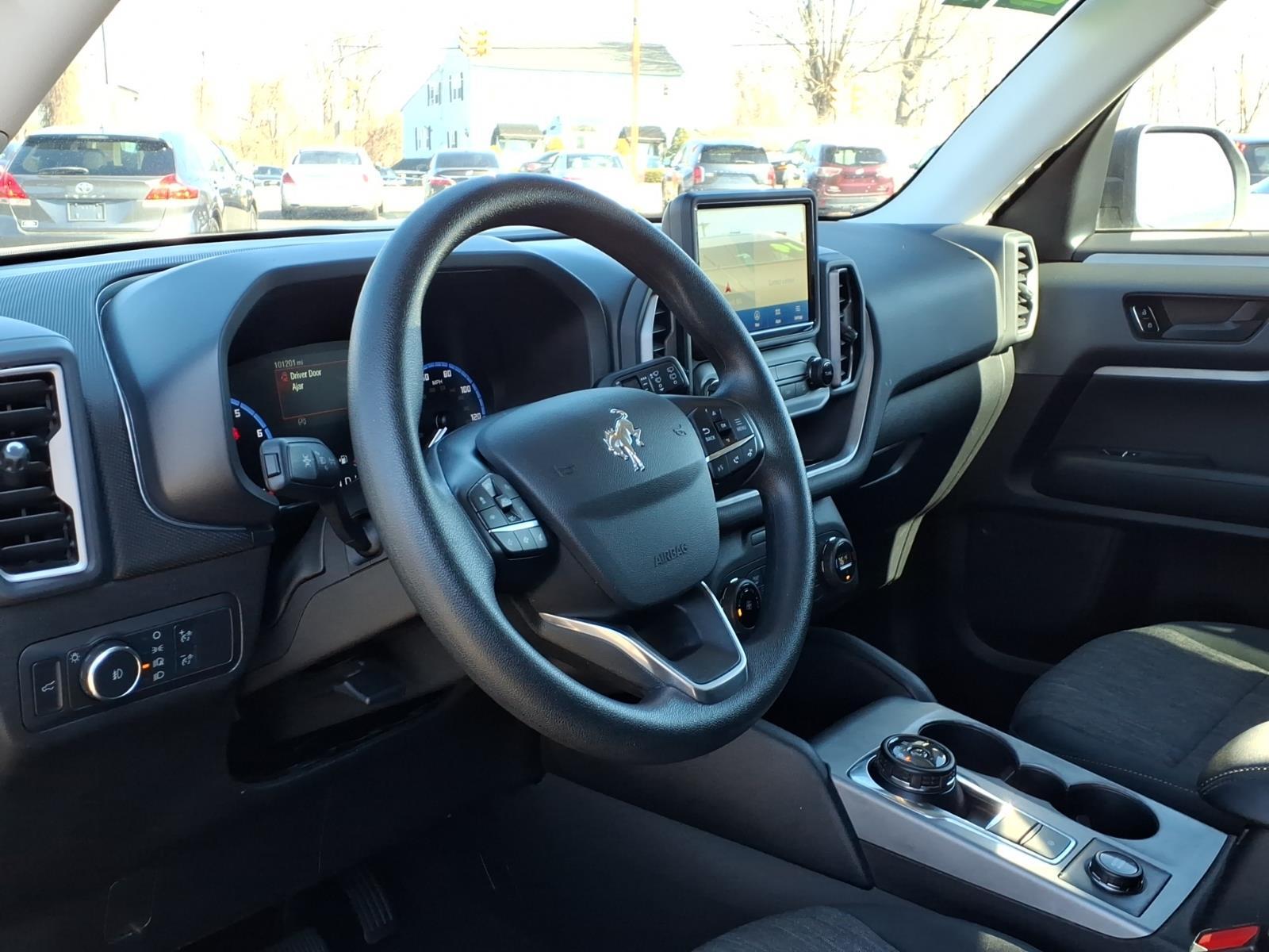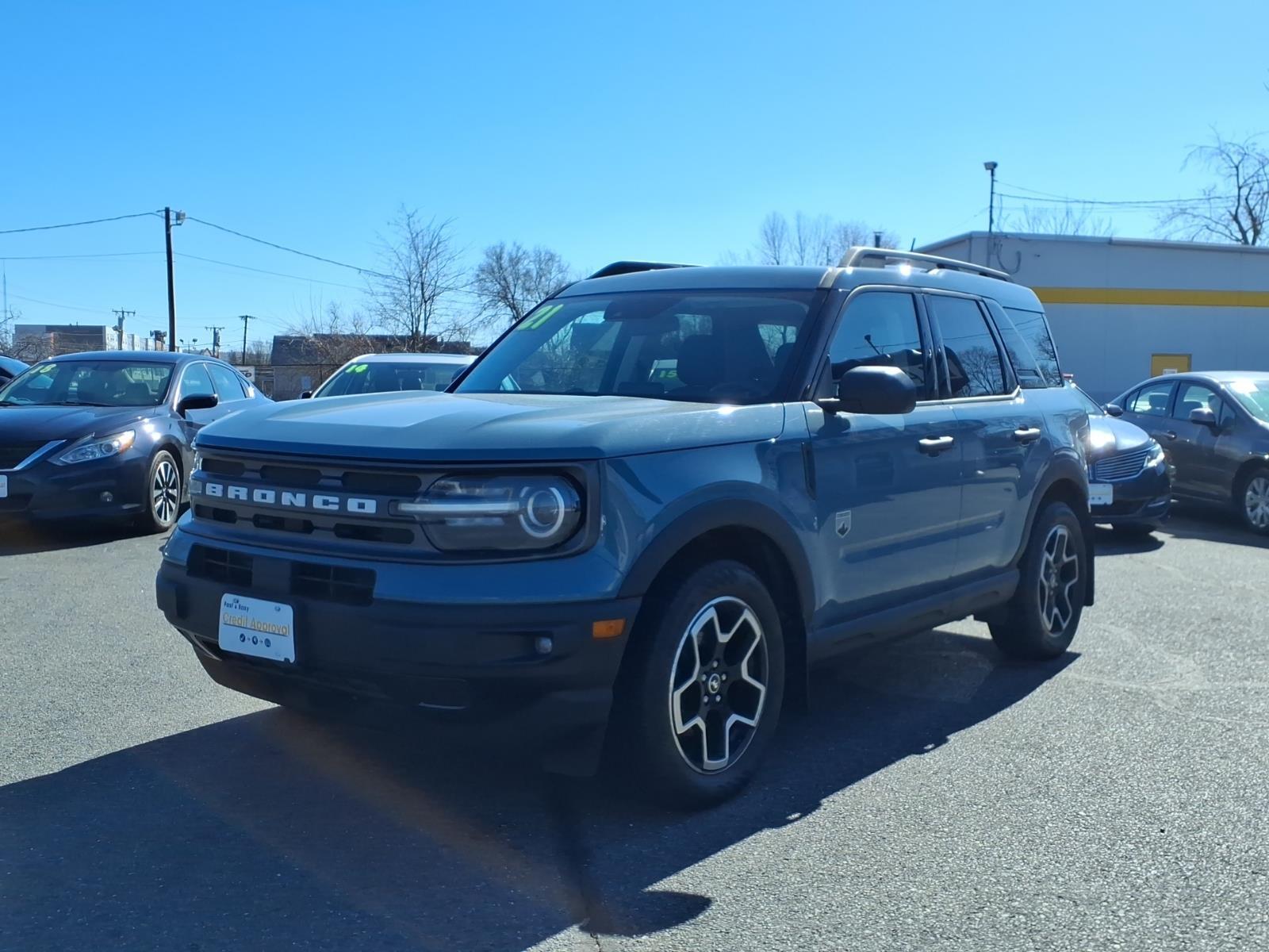 GUARANTEED CREDIT APPROVAL, A PLUS BBB DEALER, Fun to drive on the road or off, our 2021 Ford Bronco Sport Big Bend 4X4 in Alto Blue delivers bold adventures on demand. Powered by a TurboCharged 1.5 Liter EcoBoost 4 Cylinder supplying 181hp paired to an 8 Speed Automatic transmission tuned just for thrill-seekers like you. A Terrain Management System with five GOAT Modes lets you take on tough conditions with complete confidence, and this Four Wheel Drive SUV also scores nearly 28mpg on the highway. Remarkably functional and stylish, our Bronco Sport boasts LED lighting, hatch-mounted flood lamps, exclusive badging, alloy wheels, flip-up rear glass, and a safari-style roof with side rails. Our purpose-built Big Bend cabin is as versatile as it is comfortable, thanks to a rubberized cargo floor, easy-cleaning cloth heated front seats, a multifunction steering wheel, automatic climate control, power accessories, and Intelligent Access with push-button ignition for quick getaways. As for tech highlights, include an 8-inch touchscreen, Android Auto�, Apple CarPlay�, Bluetooth�, WiFi compatibility, and a six-speaker sound system. Pack in your gear, too, with ample cargo space. A rearview camera and Ford's Co-Pilot360 technology ensure passenger protection with automatic braking, a blind-spot monitor, lane-keeping assistance, and more. See our Bronco Sport Big Bend and discover a gateway to the great outdoors! Save this Page and Call for Availability. We Know You Will Enjoy Your Test Drive Towards Ownership!