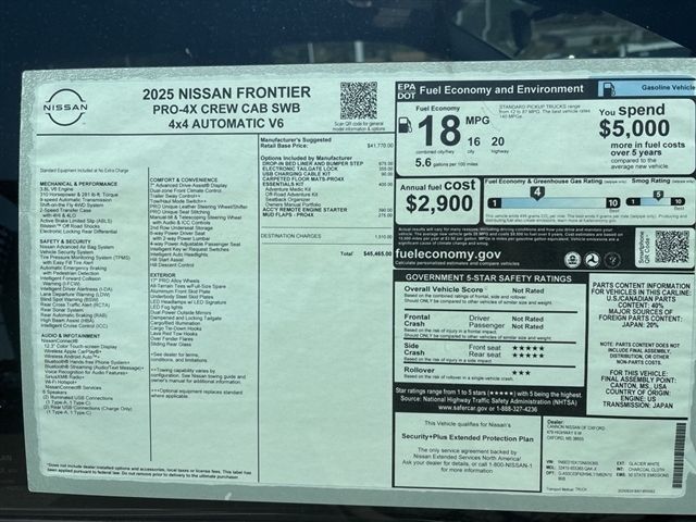 Glacier White 2025 Nissan Frontier PRO-4X 4WD 9-Speed Automatic with Overdrive 3.8L DI DOHC 24V V6 4WD.