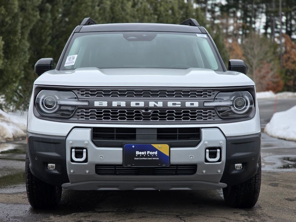Best Ford Certified Gold. EPA 27 MPG Hwy/21 MPG City! Badlands trim. Heated Leather Seats, Onboard Communications System, iPod/MP3 Input, Satellite Radio, Turbo Charged, 4x4, Aluminum Wheels, Trailer Hitch, Back-Up Camera. KEY FEATURES INCLUDELeather Seats, 4x4, Heated Driver Seat, Back-Up Camera, Turbocharged, Satellite Radio, iPod/MP3 Input, Onboard Communications System, Trailer Hitch, Aluminum Wheels MP3 Player, Keyless Entry, Privacy Glass, Child Safety Locks. Ford Badlands with Oxford White exterior and Dark Space Gray interior features a 4 Cylinder Engine with 250 HP at 5500 RPM*. AFFORDABILITYWas $30,999. This Bronco Sport is priced $10,000 below J.D. Power Retail. PURCHASE WITH CONFIDENCEThis vehicle is part of the Best Ford Certified Gold program. Certification includes a 172-point inspection, 12-month/12,000-mile Comprehensive Limited Warranty, and 5-year/100,000-mile Powertrain Limited Warranty coverage. This vehicle has been certified to pass New Hampshire state inspection. Best price, selection, and service! Please call or email for a complimentary copy of the CARFAX report no purchase necessary. OUR OFFERINGSWe invite our neighbors in New England to visit Best Ford, where your satisfaction is our mission. Our commitment to offering an unparalleled selection of vehicles is matched only by our dedication to providing a buying experience that is second to none. With offerings like service loaners, pick-up, delivery options, and mobile service, Best Ford is revolutionizing how you maintain your vehicle. Best price, and service! Please call/email for a complimentary copy of the CARFAX report. COMMUNITY COMMITMENTAt Best Ford, we believe in more than just selling vehicles we are committed to making a difference, both on and off the road. With donations exceeding $149,856 to local organizations including The Boys & Girls Club, United Way, Boston Childrens Hospital, and Nashua Childrens Home, we are deeply invested in the prosperity and well-being of our community. Pricing analysis performed on 4/17/2026. Horsepower calculations based on trim engine configuration. Fuel economy calculations based on original manufacturer data for trim engine configuration. Please confirm the accuracy of the included equipment by calling us prior to purchase.