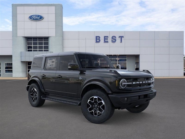Nav System, Moonroof, Heated Leather Seats, Running Boards, 4x4, Turbo Charged Engine, Aluminum Wheels, TRANSMISSION: 10-SPEED AUTOMATIC, DUAL TOPS. Shadow Black exterior and Smoked Truffle w/ Black Onyx interior, Outer Banks trim. KEY FEATURES INCLUDELeather Seats, Navigation, 4x4, Heated Driver Seat, Back-Up Camera, Running Boards, Turbocharged, Satellite Radio, iPod/MP3 Input, Onboard Communications System. MP3 Player, Privacy Glass, Keyless Entry, Steering Wheel Controls. Ford Outer Banks with Shadow Black exterior and Smoked Truffle w/ Black Onyx interior features a 4 Cylinder Engine with 275 HP at 5700 RPM*. OPTION PACKAGESDUAL TOPS carbonized gray molded-in-color (MIC) hard top and black soft top, Rear-Window Defroster & Washer, EQUIPMENT GROUP 314A LUX PACKAGE Evasive Steering Assist, Adaptive Cruise Control, Information on Demand Panel, Radio: B&O Sound System by Bang & Olufsen, 12 speakers including subwoofer, Front Parking Sensors, 360-Degree Camera, Universal Garage Door Opener, Sideview Mirrors, LED approach lamps and LED spotlight, TRANSMISSION: 10-SPEED AUTOMATIC trail control and trail turn assist (STD). WHY BUY FROM USWe invite our neighbors in New England to visit Best Ford, where your satisfaction is our mission. Our commitment to offering an unparalleled selection of new vehicles is matched only by our dedication to providing a buying experience that is second to none. With offerings like service loaners, pick-up and delivery options, and mobile service, Best Ford is revolutionizing how you maintain your vehicle. Shop the Best first!BEST price BEST Selection BEST Service! COMMUNITY COMMITMENTAt Best Ford, we believe in more than just selling vehicles we are committed to making a difference, both on and off the road. With donations exceeding $149,856 to local organizations including The Boys & Girls Club, United Way, Boston Childrens Hospital, and Nashua Childrens Home, we are deeply invested in the prosperity and well-being of our community. Horsepower calculations based on trim engine configuration. Please confirm the accuracy of the included equipment by calling us prior to purchase.