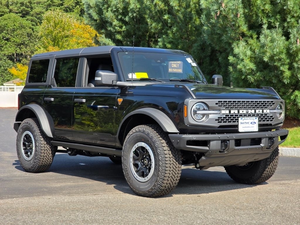 Heated Seats, Sunroof, Onboard Communications System, iPod/MP3 Input, Satellite Radio, Back-Up Camera, Turbo, Alloy Wheels, ENGINE: 2.7L ECOBOOST V6, SASQUATCH PACKAGE. Badlands trim, Shadow Black exterior and Black Onyx interior. KEY FEATURES INCLUDE4x4, Heated Driver Seat, Back-Up Camera, Satellite Radio, iPod/MP3 Input, Onboard Communications System, Chrome Wheels, WiFi Hotspot, Apple CarPlay�, Heated Seats. MP3 Player, Privacy Glass, Keyless Entry, Child Safety Locks. Ford Badlands with Shadow Black exterior and Black Onyx interior features a V6 Cylinder Engine with 315 HP at 5500 RPM*. OPTION PACKAGESSASQUATCH PACKAGE Wheels: 17 Carbonized Gray Painted Aluminum, High Clearance Fender Flares, High Clearance Suspension, 4.7 Final Drive Ratio, electronic-locking front and rear axle, Tires: LT315/70R17 Rugged-Terrain, Position-Sensitive Bilstein Shock Absorbers, ENGINE: 2.7L ECOBOOST V6 GVWR: 6,180 lbs, CARBONIZED GRAY MOLDED-IN-COLOR HARD TOP Rear-Window Defroster & Washer, TRANSMISSION: 10-SPEED AUTOMATIC remote start system, trail control, trail turn assist and trail one-pedal driving, 4.46 Axle Ratio, Rear HVAC. WHY BUY FROM USWe invite our neighbors in New England to visit Best Ford, where your satisfaction is our mission. Our commitment to offering an unparalleled selection of new vehicles is matched only by our dedication to providing a buying experience that is second to none. With offerings like service loaners, pick-up and delivery options, and mobile service, Best Ford is revolutionizing how you maintain your vehicle. Shop the Best first!BEST price BEST Selection BEST Service! COMMUNITY COMMITMENTAt Best Ford, we believe in more than just selling vehicles we are committed to making a difference, both on and off the road. With donations exceeding $149,856 to local organizations including The Boys & Girls Club, United Way, Boston Childrens Hospital, and Nashua Childrens Home, we are deeply invested in the prosperity and well-being of our community. Horsepower calculations based on trim engine configuration. Please confirm the accuracy of the included equipment by calling us prior to purchase.